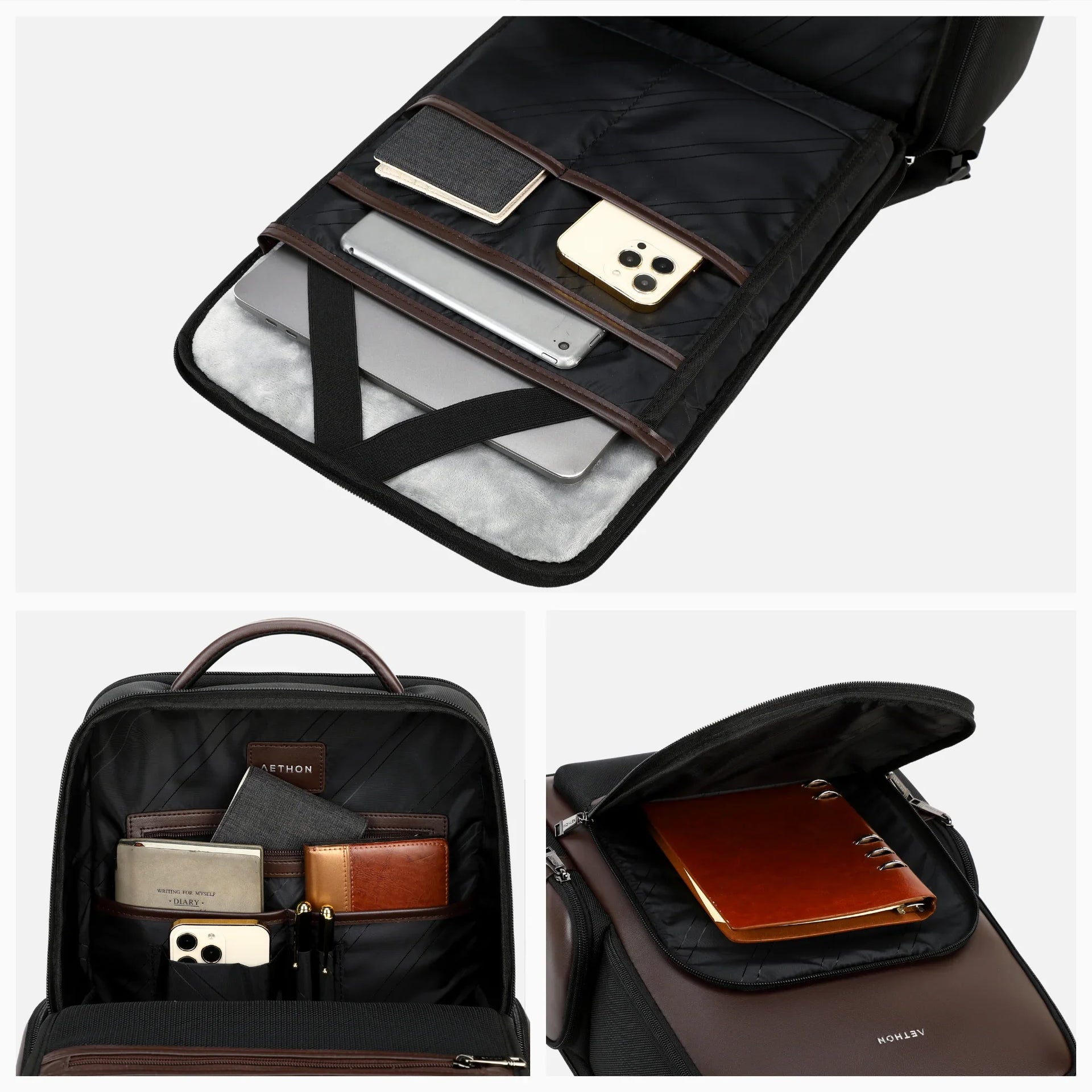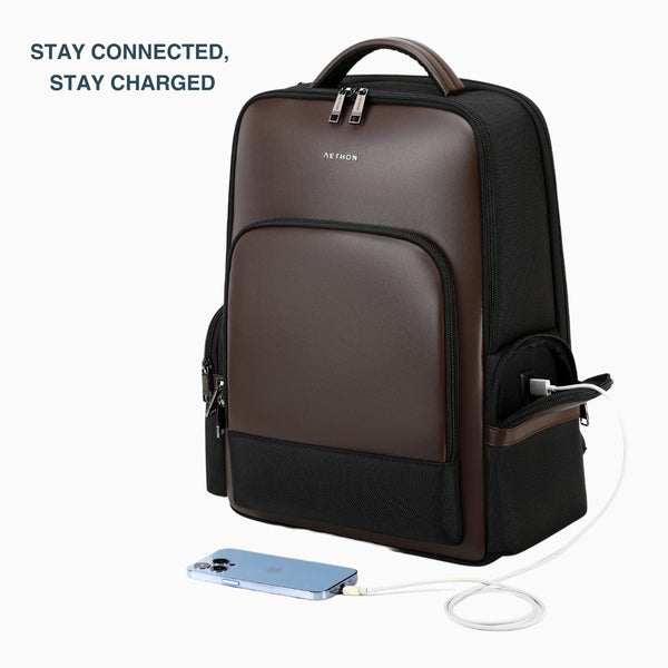 Its cocoa black finish looks elegant and modern. The smooth, wipe-clean surface keeps it looking fresh. Padded straps give comfort for hours. Multiple zipped pockets keep your items safe and organized.