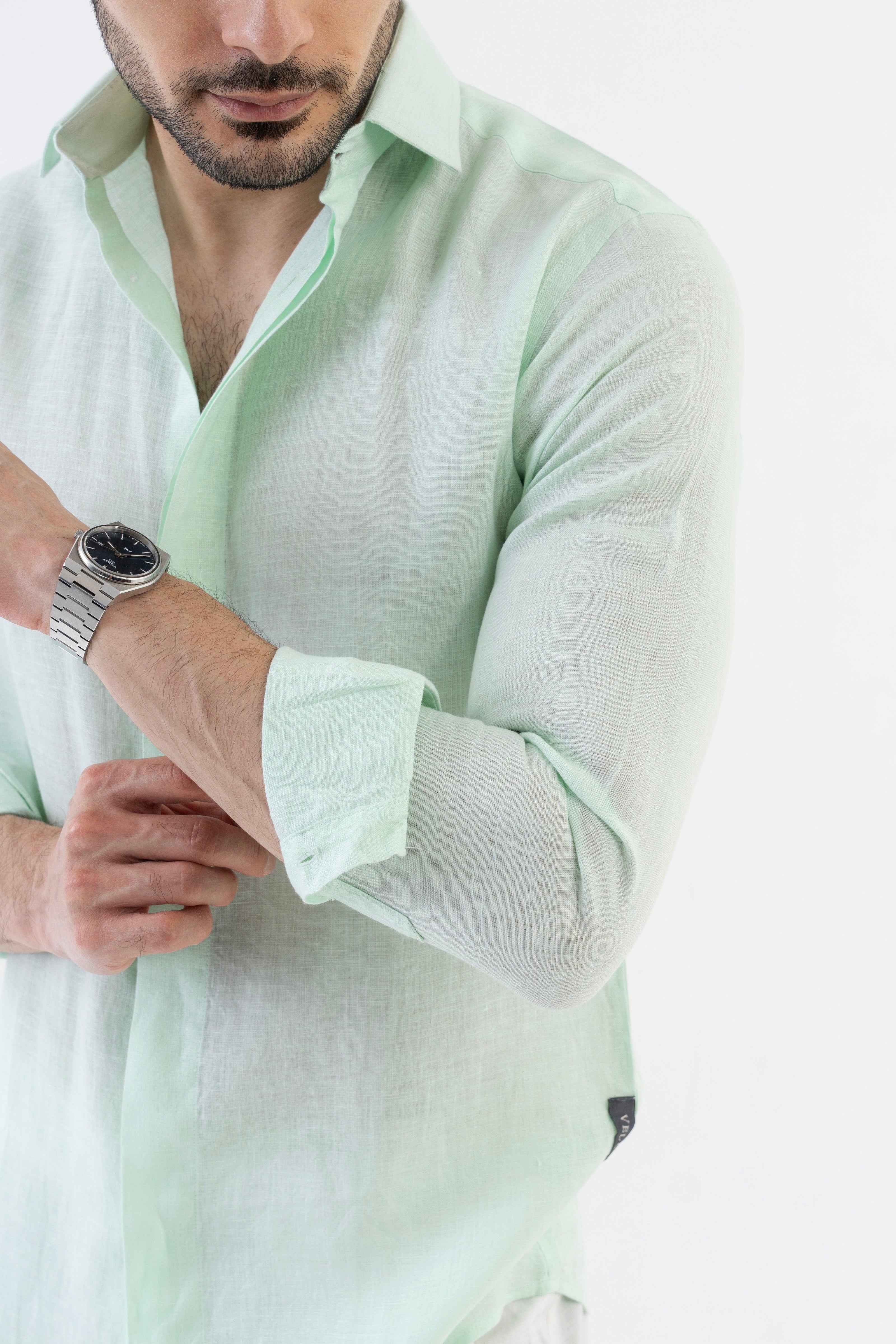 100% Linen Soft Touch Relaxed Fit Shirt in Cool Mint