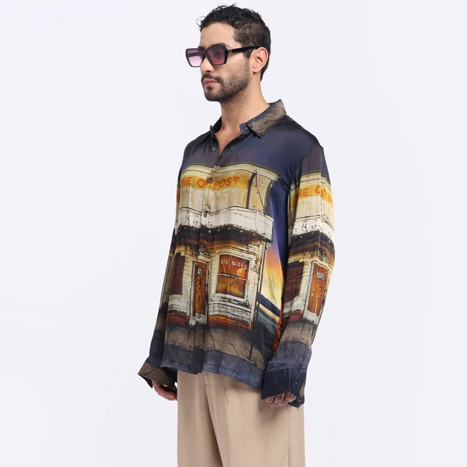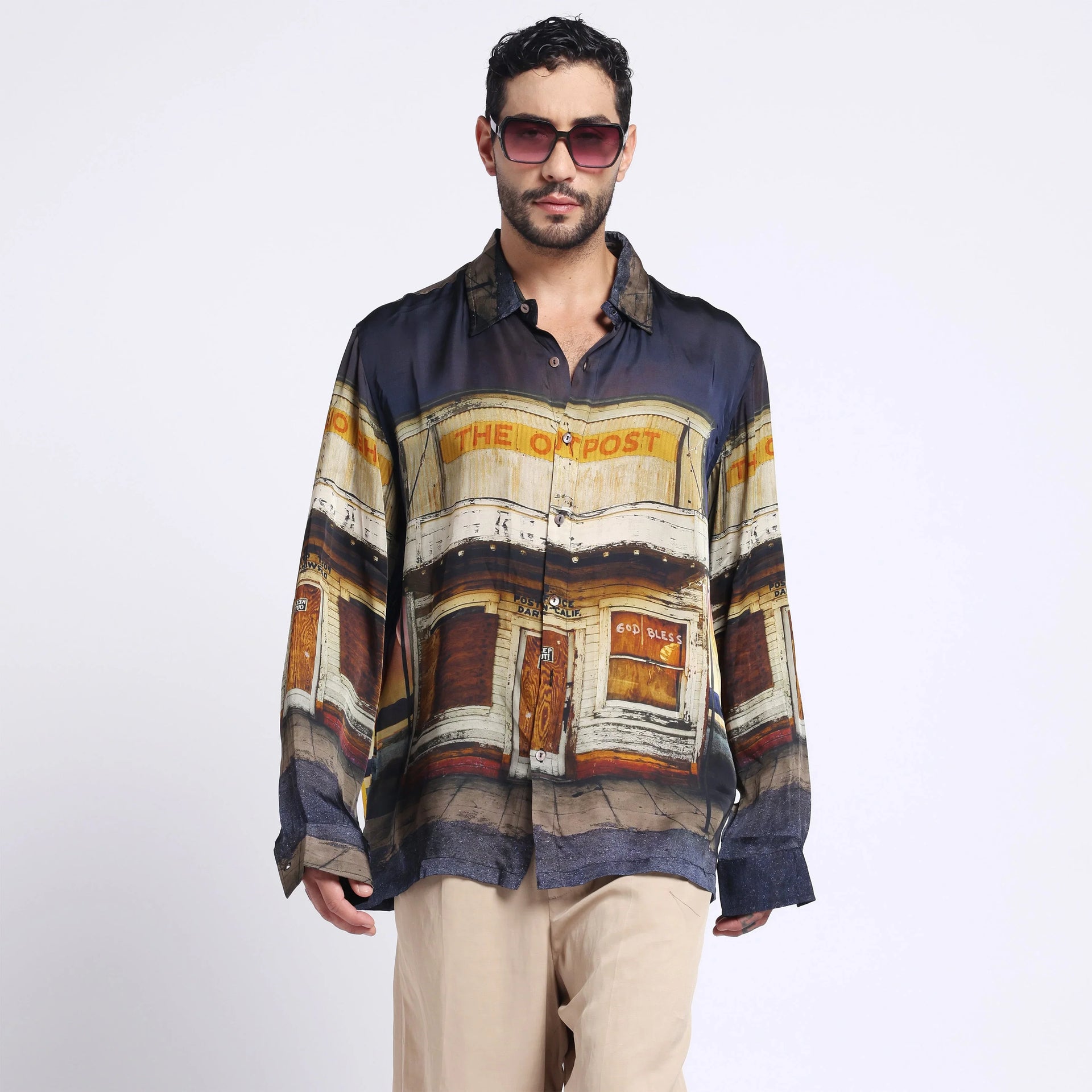 What's the story here?Channel the spirit of wide-open spaces with this shirt featuring a striking checkpost in a serene grassland print. A blend of rugged and calm, it captures the quiet authority of borders and the endless freedom of nature. Wear the wilderness, stand your ground.