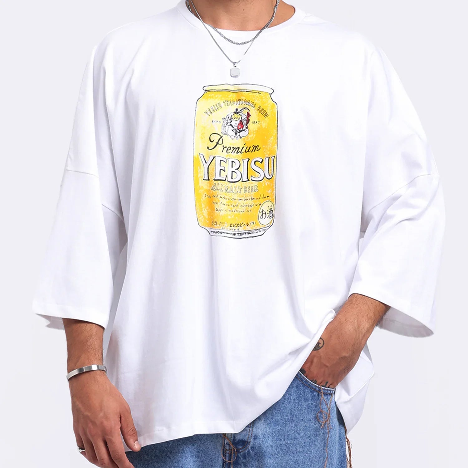 Tokyo Brew Vibes is a relaxed-fit tee made from premium cotton, featuring a bold screen-printed graphic inspired by classic Japanese beer can art. With its oversized silhouette and laid-back energy, it’s the perfect everyday statement piece for effortless streetwear styling.