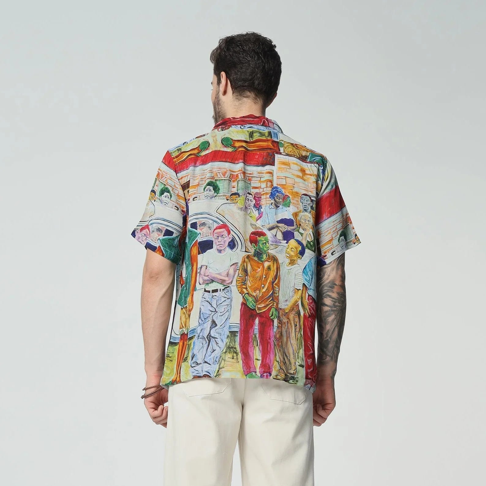 A premium shirt showcasing a beautiful, emotionally rich street view that evokes the innocence of childhood days. It's a nostalgic masterpiece, capturing a moment in time with a print style unlike anything you've seen before. The perfect choice to stand out in quiet sophistication and artistic flair.