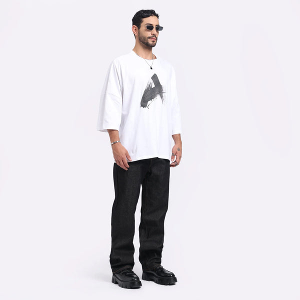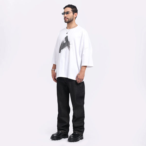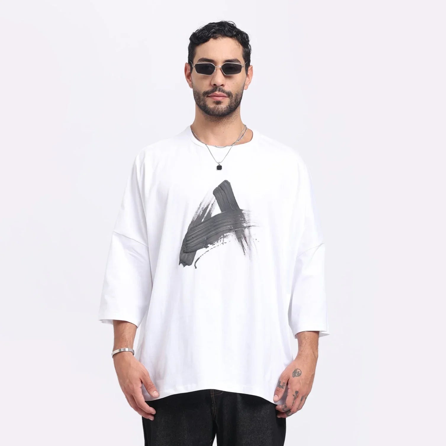 Art meets fashion. This oversized white tee features a striking hand-printed brushstroke graphic, making each piece truly unique. Crafted from soft, breathable cotton with a relaxed fit, it blends minimalism with bold expression. A statement staple for any modern wardrobe.