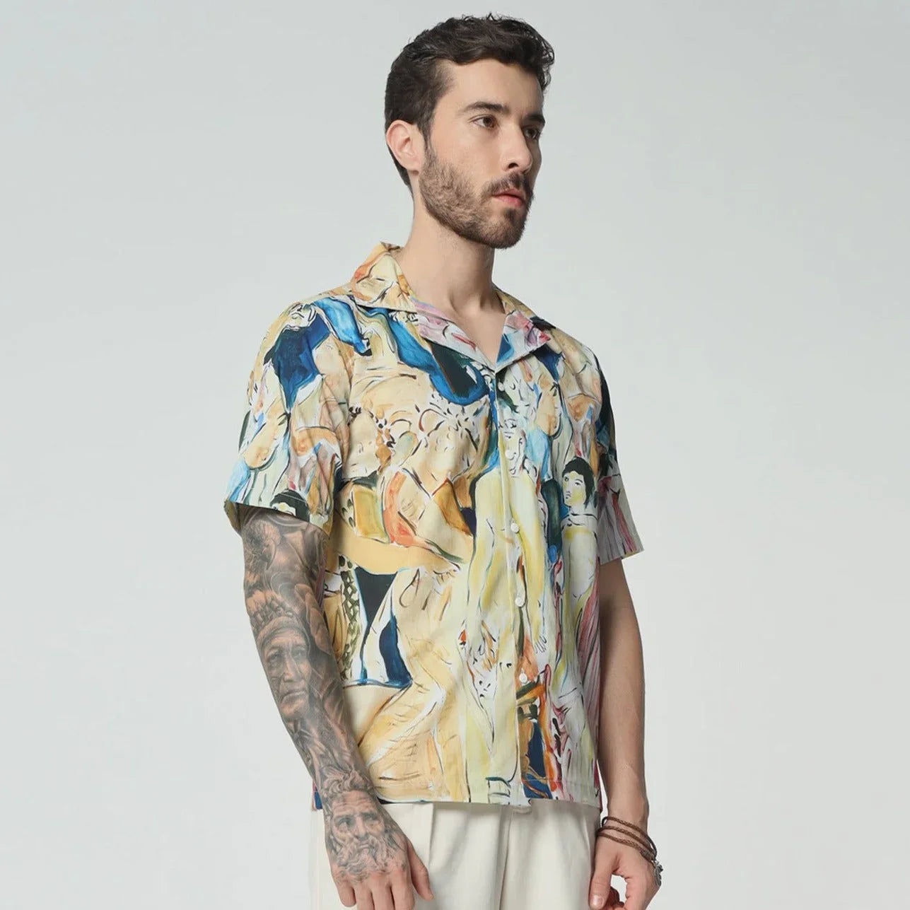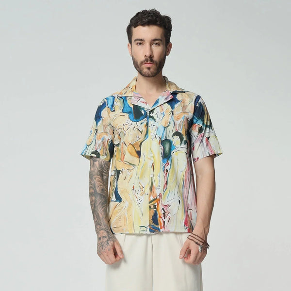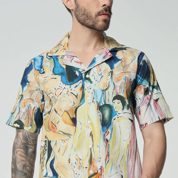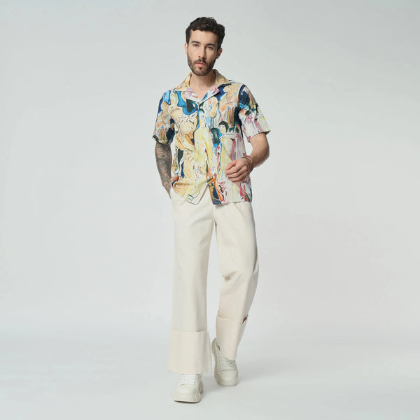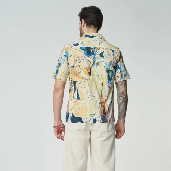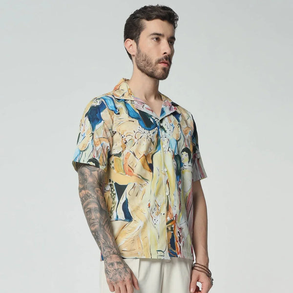 Embrace timeless elegance with this cotton shirt, that echoes the grandeur of a vintage celebration. The design is a nostalgic homage to old-world festivities, filled with intricate patterns and classic charm. Wear it to evoke the spirit of bygone eras, where every moment was a lavish affair.