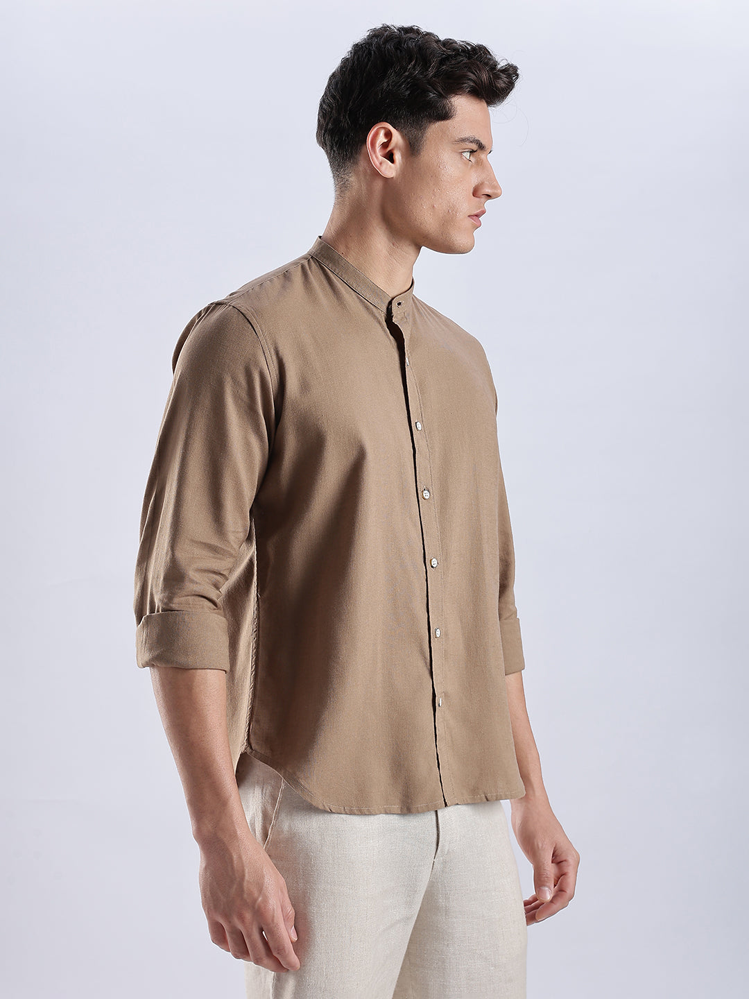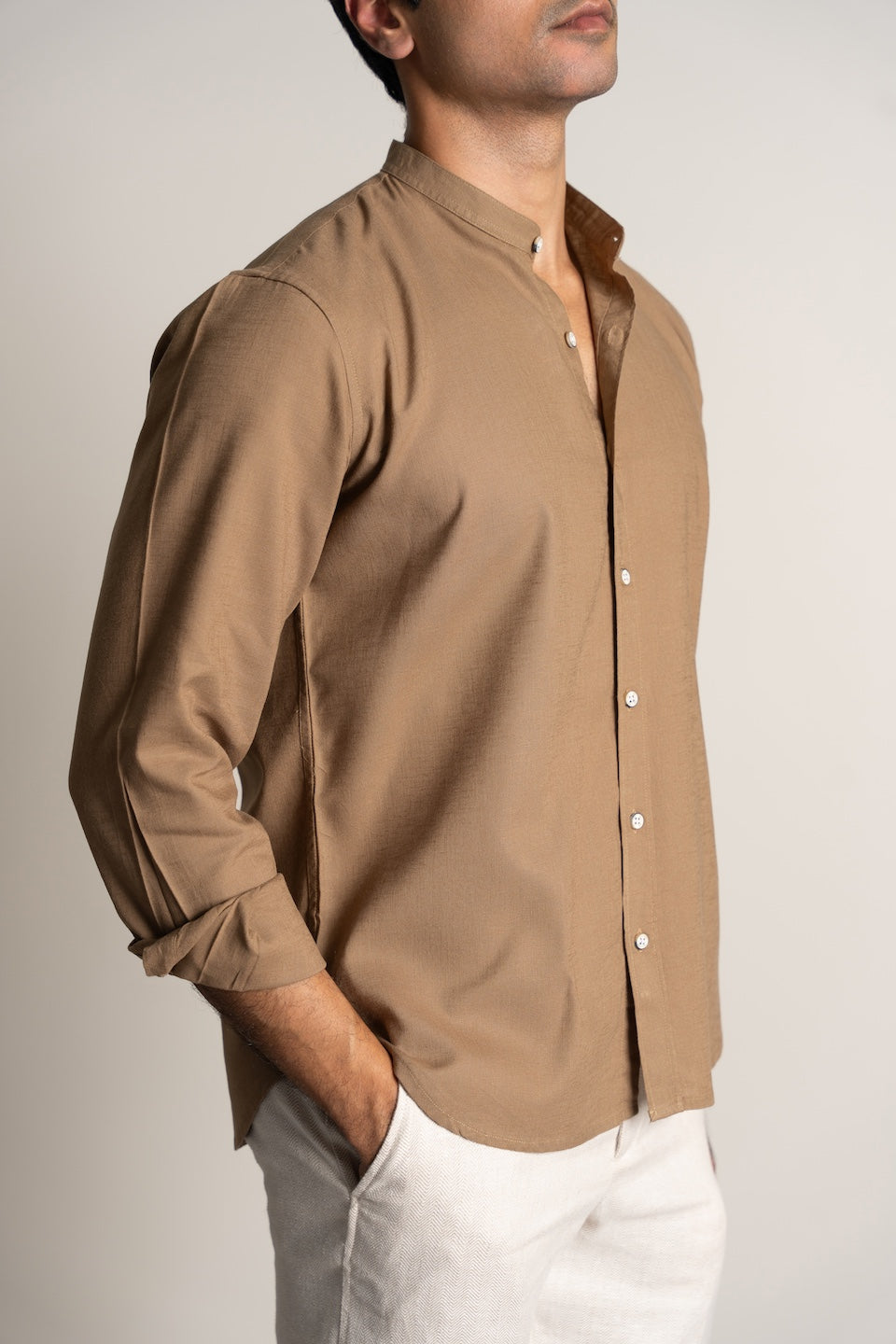 Kyoto Linen Mandarin Shirt in Mocha Dust