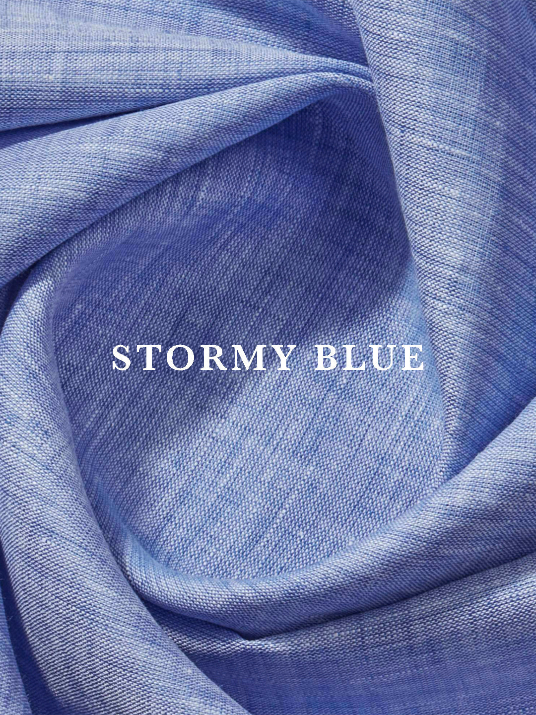 Crafted from the finest 60s Lea linen yarns, this Stormy Blue fabric is the epitome of breathable luxury. With its smooth hand feel, natural texture, and rich matte finish, it’s the ideal cut piece for crafting one perfectly tailored shirt. Soft yet structured, this fabric elevates everyday elegance and stands out for its long-lasting quality and quiet sophistication.