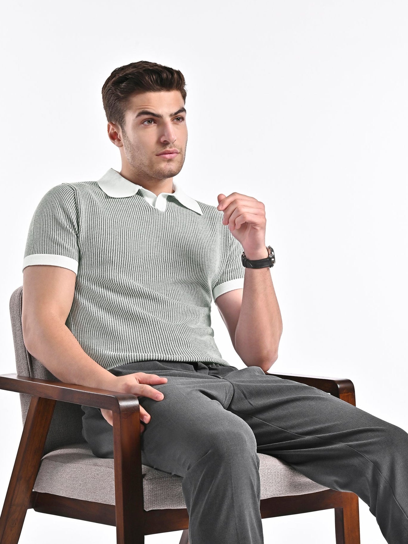 Jacquard Johnny-Collar Knit Polo in Forest Green X White
