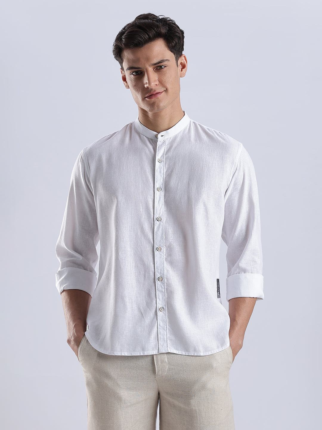 Kyoto Linen Mandarin Shirt in Shiro Pink