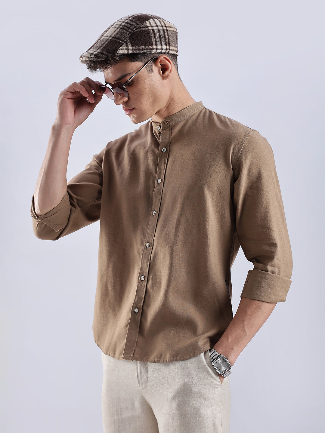 Kyoto Linen Mandarin Shirt in Mocha Dust