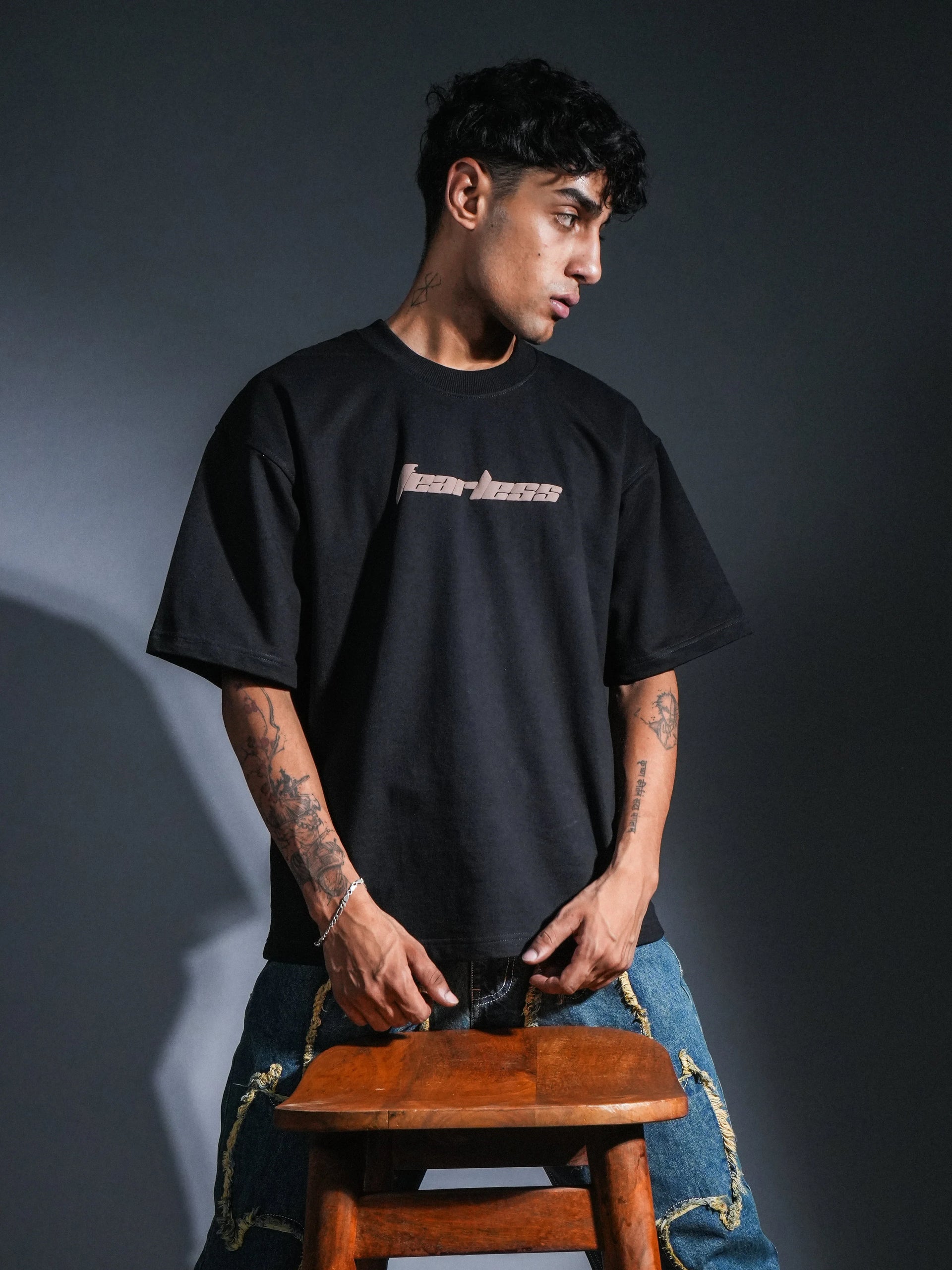 Colour: BlackMaterial: 100% Cotton, 240 GSMOccasion: Casual, Streetwear, Daily WearPattern: Graphic Puff PrintNeckline: Crew NeckFit: Oversized FitSleeve Type: Short SleevesCare Instructions: Machine wash cold, wash with like colours, turn inside out, use mild detergent, do not bleach, tumble dry lowPack Contains: 1 T-shirtCountry Of Origin: India