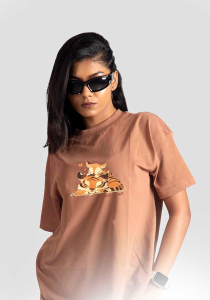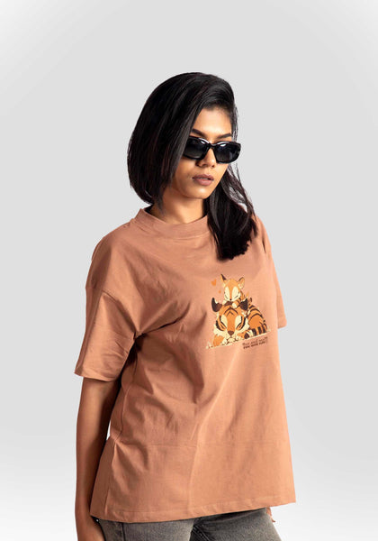 Showcase your bold side every time you wear the womens graphic oversized mocha tee. The quality fabric stands up to everyday use. You get a tee that lasts and looks good. It is more than a basic. It is an essential for embracing fashion with ease.