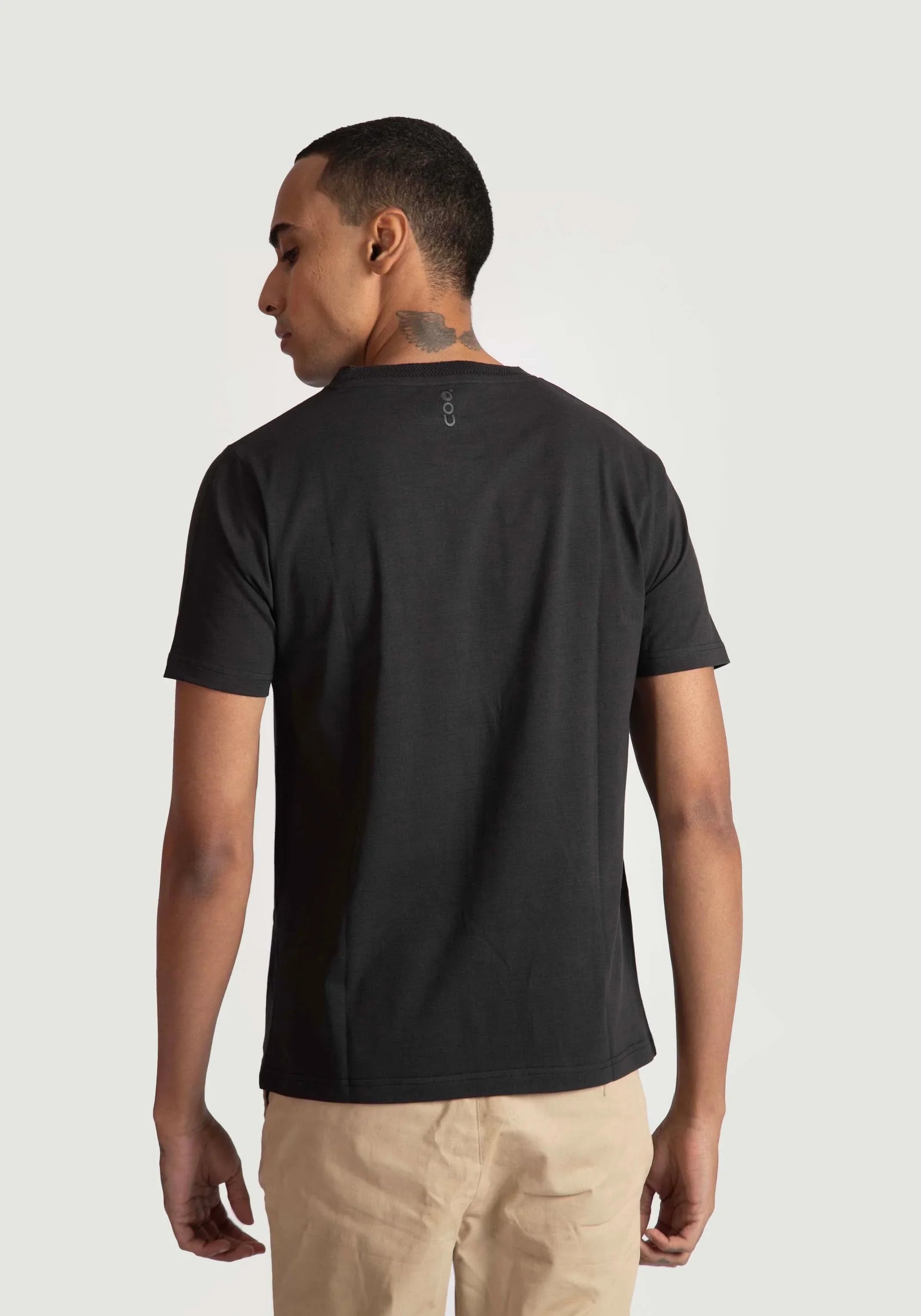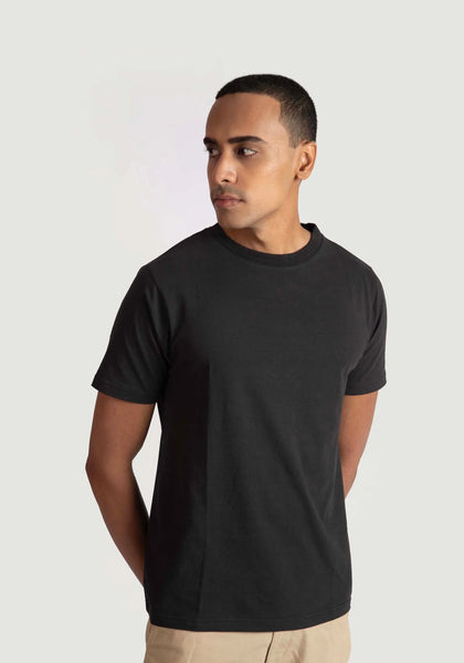 Practicality stands out. The regular fit black tee for men is machine-washable. The fabric resists fading. The black shade stays bold. This tee is ready for daily rotation in your closet.