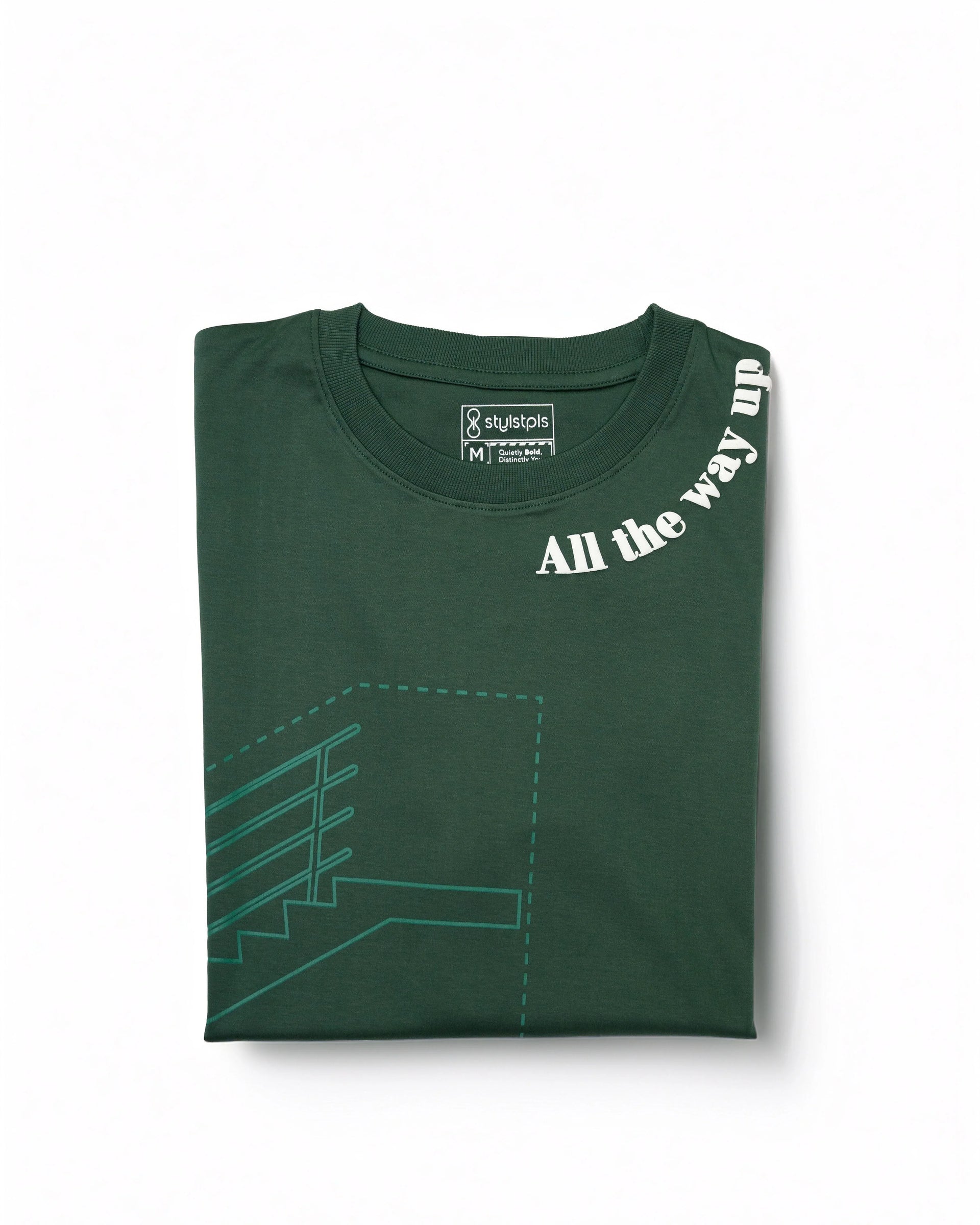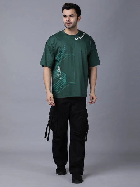 Elevate your streetwear with this deep green T-shirt crafted from premium Supima cotton for breathable comfort. Featuring a geometric line art design inspired by modern architecture, this relaxed fit urban streetwear tee blends contemporary minimalist style and versatility, perfect for effortless everyday wear and creative, individual fashion statements.