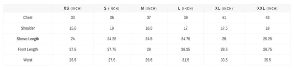 *The sizes in image are in "Inches"