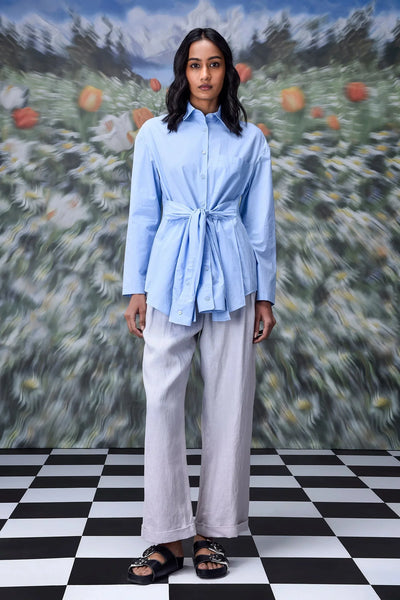 This unique casual light blue shirt for women is anything but ordinary. It blends classic charm with a modern twist. The deconstructed design gives this piece a fresh and stylish edge. The regular fit feels relaxed without losing shape. The light blue shade creates a soft and calming look.