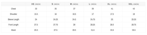 *The sizes in image are in "Inches"