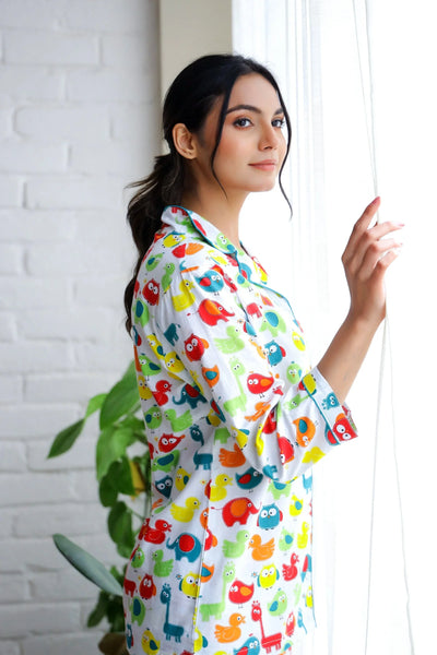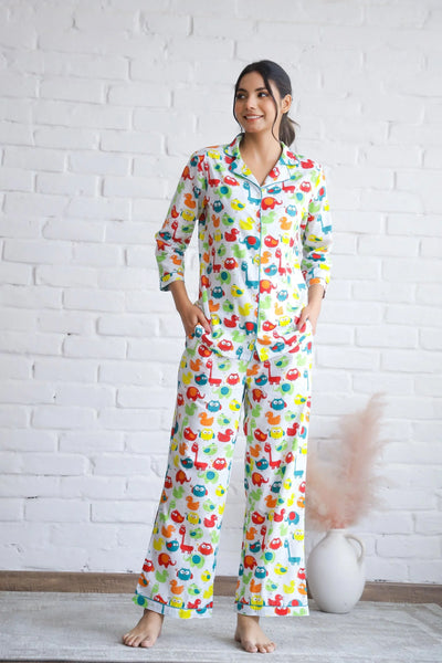 One unique aspect of this night suit is its fun print. Bright and cheerful, it adds a pop of color to your nighttime routine. Whether you're hosting a sleepover or enjoying a quiet evening, this set is a delightful choice.