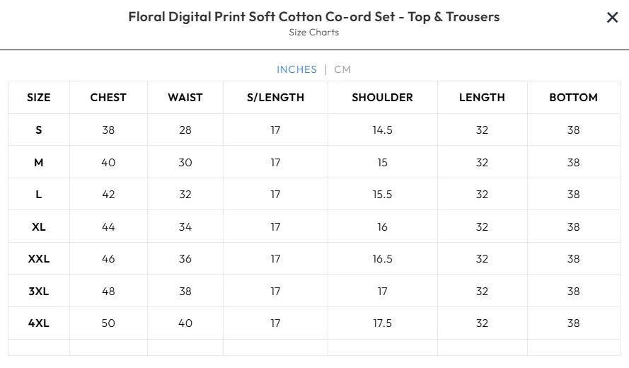 With its digital floral print, this outfit stands out while offering everyday comfort. Its versatility means you can wear it on a picnic or dress it up for evening events with just a few accessories. Investing in this floral cotton co ord set for women is an excellent addition to your fashion collection. Enhance your style with a touch of floral elegance, perfect for any season.