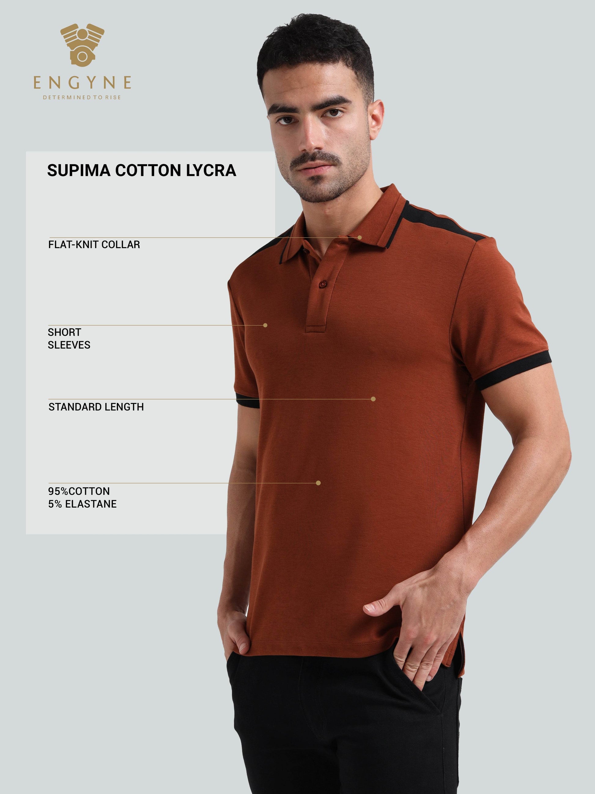 Engyne Supima Cotton Lycra Polo – Contrast Shoulder with Speed Breaker Collar Brown