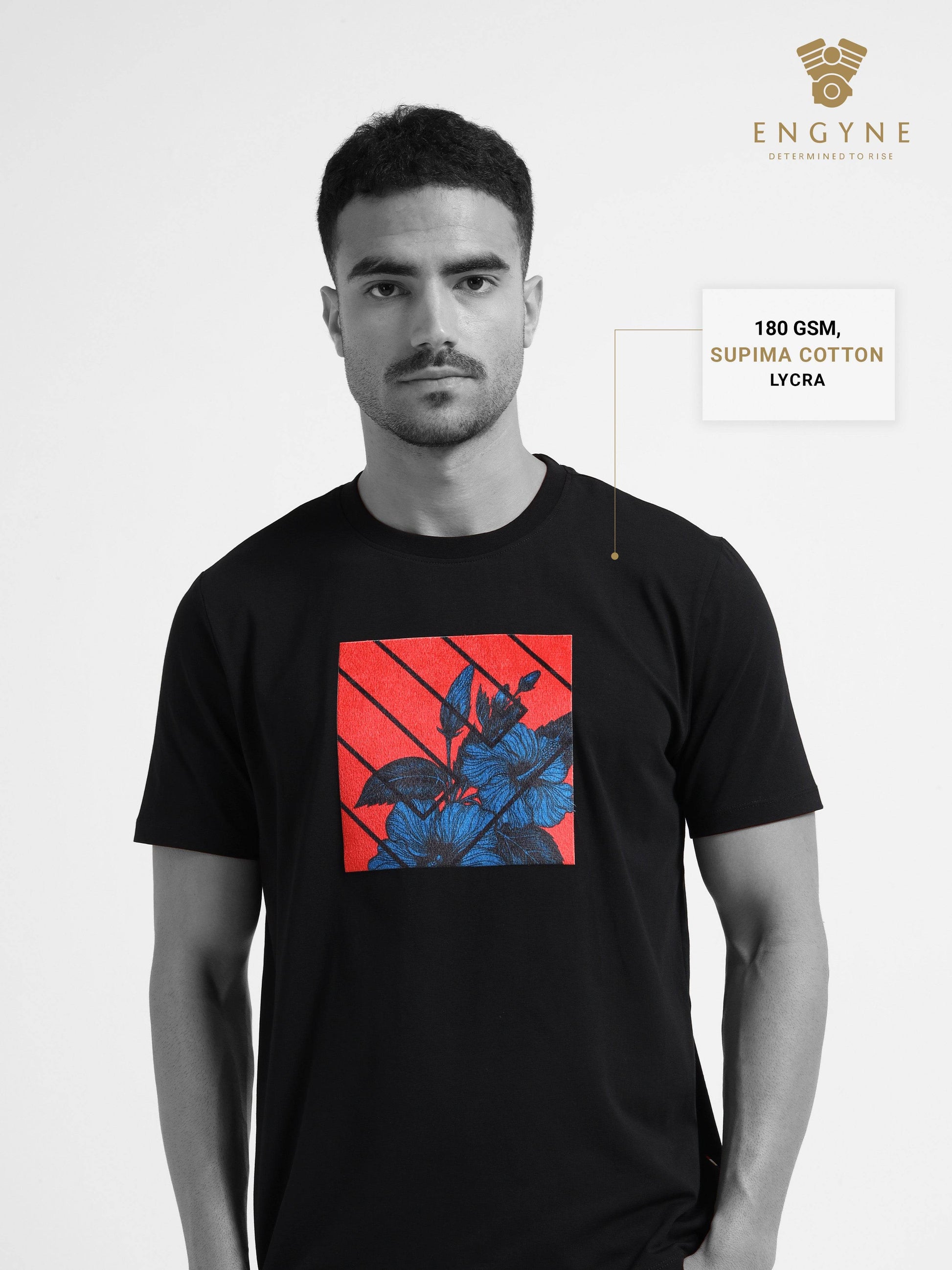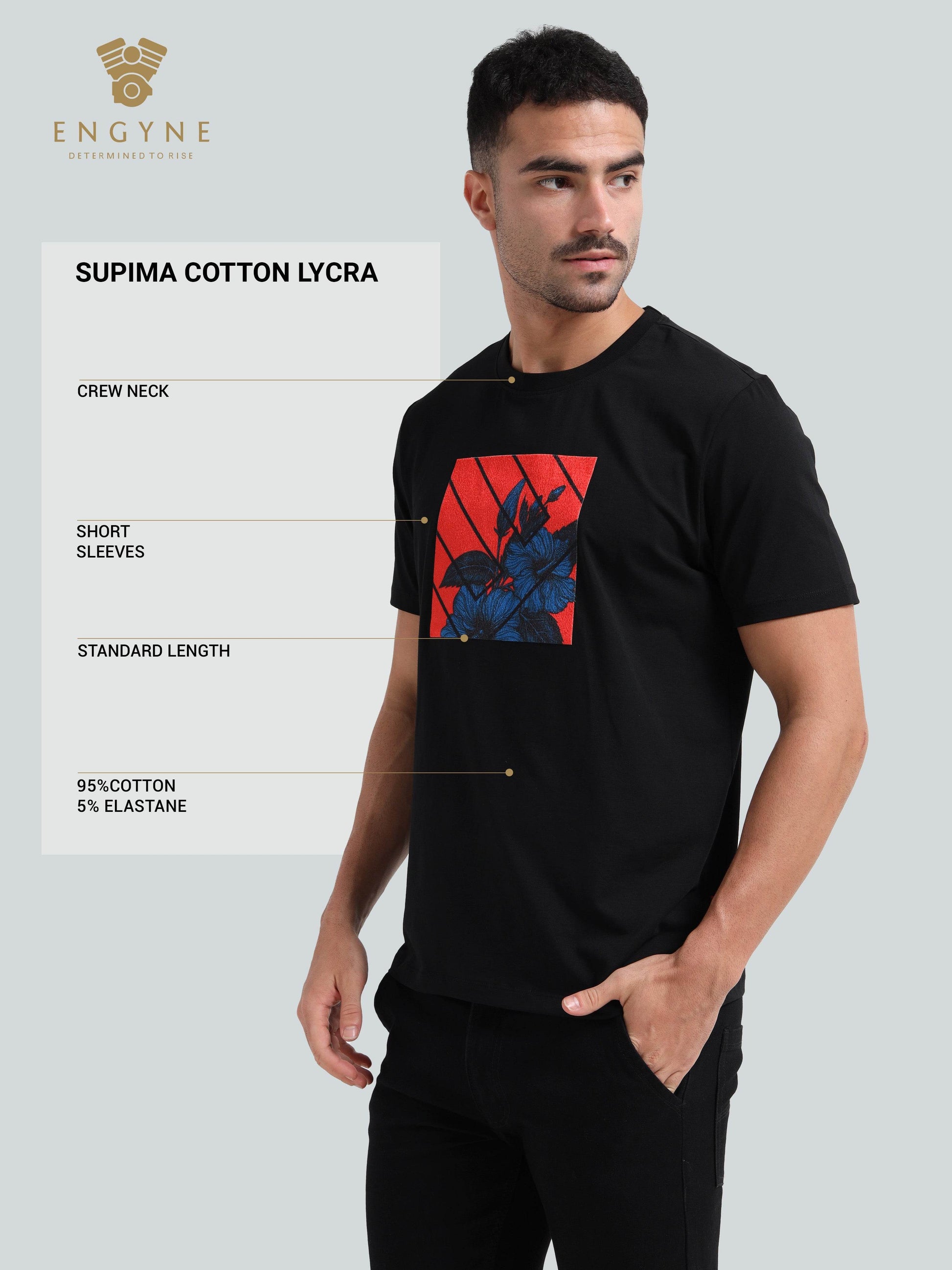 Regular-fit Engyne T-shirt in Supima Cotton Lycra with Digital Flock Print Black