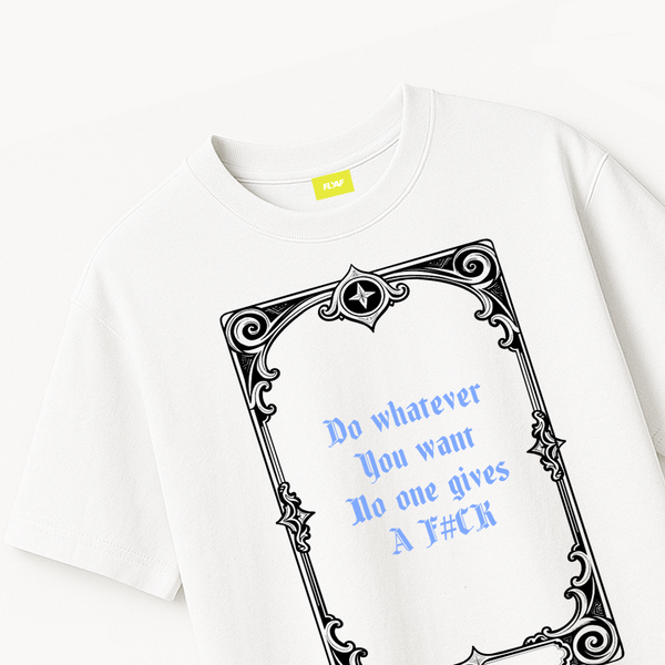 Embrace defiance with the Rebel Heart Cards Tee in crisp white on ultra-premium 100% cotton, oversized for ultimate comfort like butter on skin, delivering a rebellious punch through the unapologetic quote “do whatever you want no one gives a fuck and all you need is heart,” styled with a playing cards motif that unfolds further storytelling of risk and passion— a “fly as fuck” anthem for those bold enough to shuffle the deck of life and play their own rules.