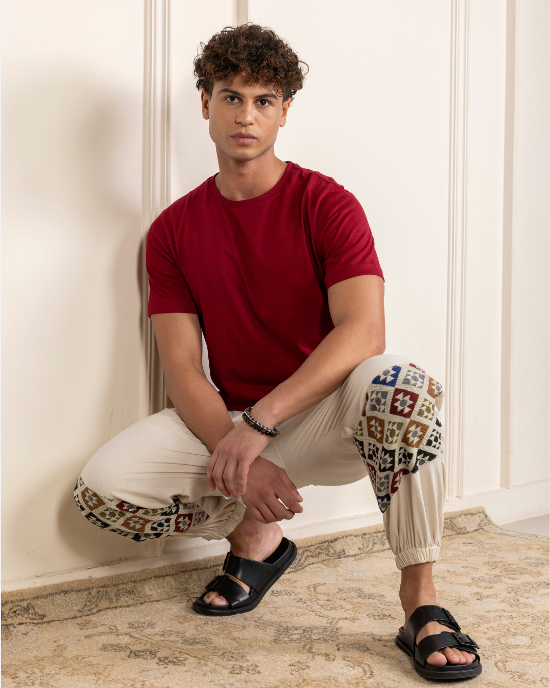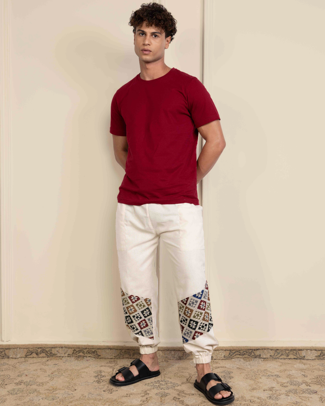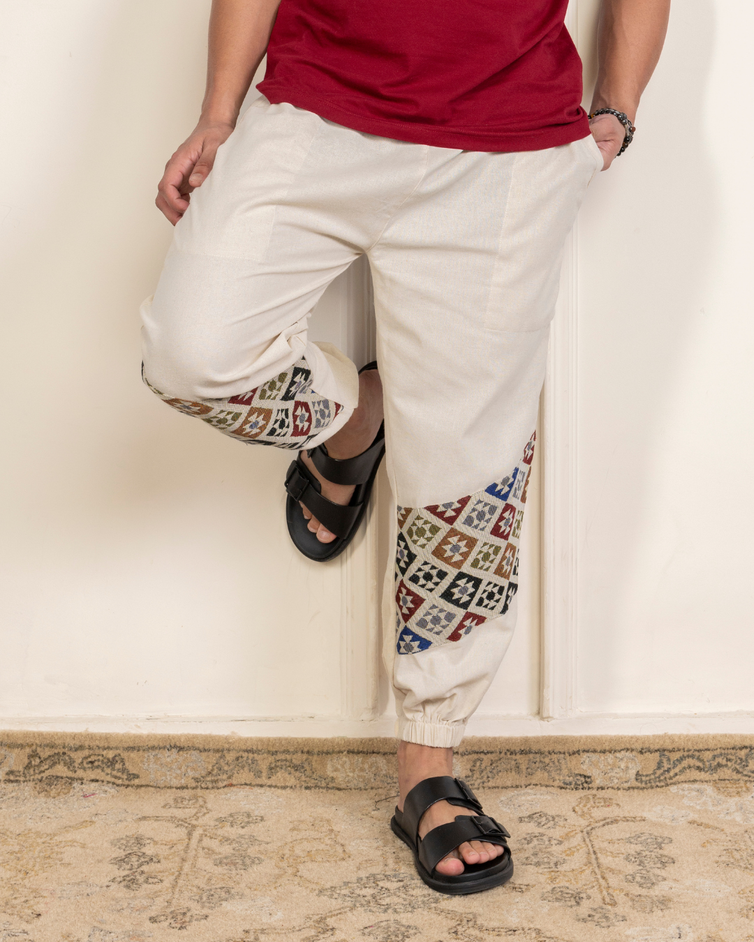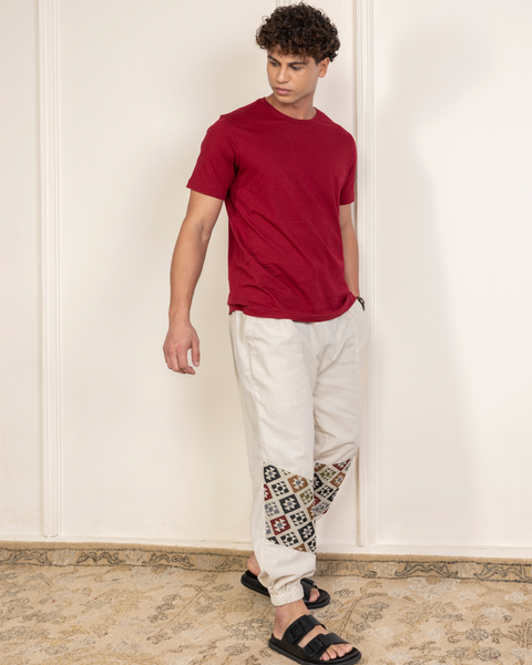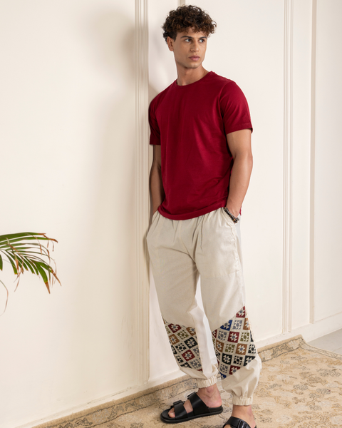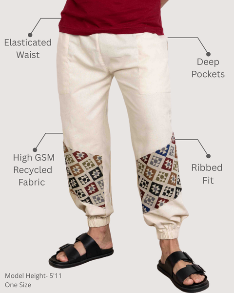Handcrafted joggers with jacquard accents – comfort with an artsy edge
