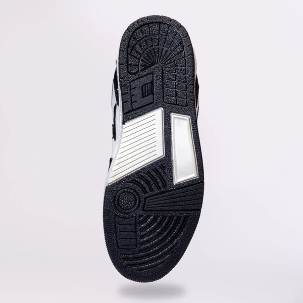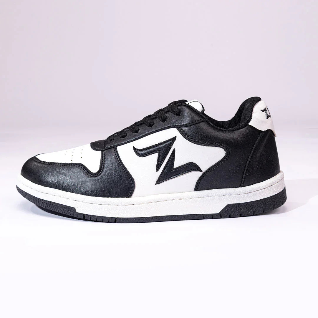 Zhoe Raven is a black and white low-top sneaker designed for modern streetwear.