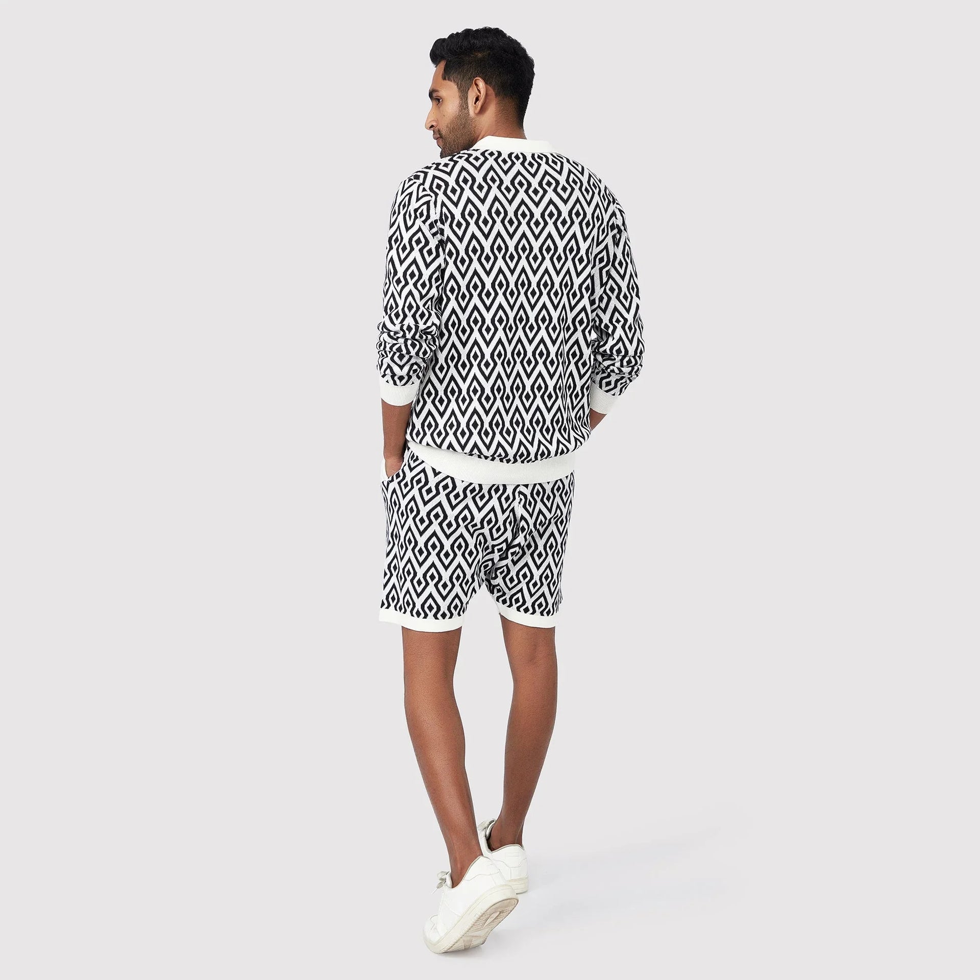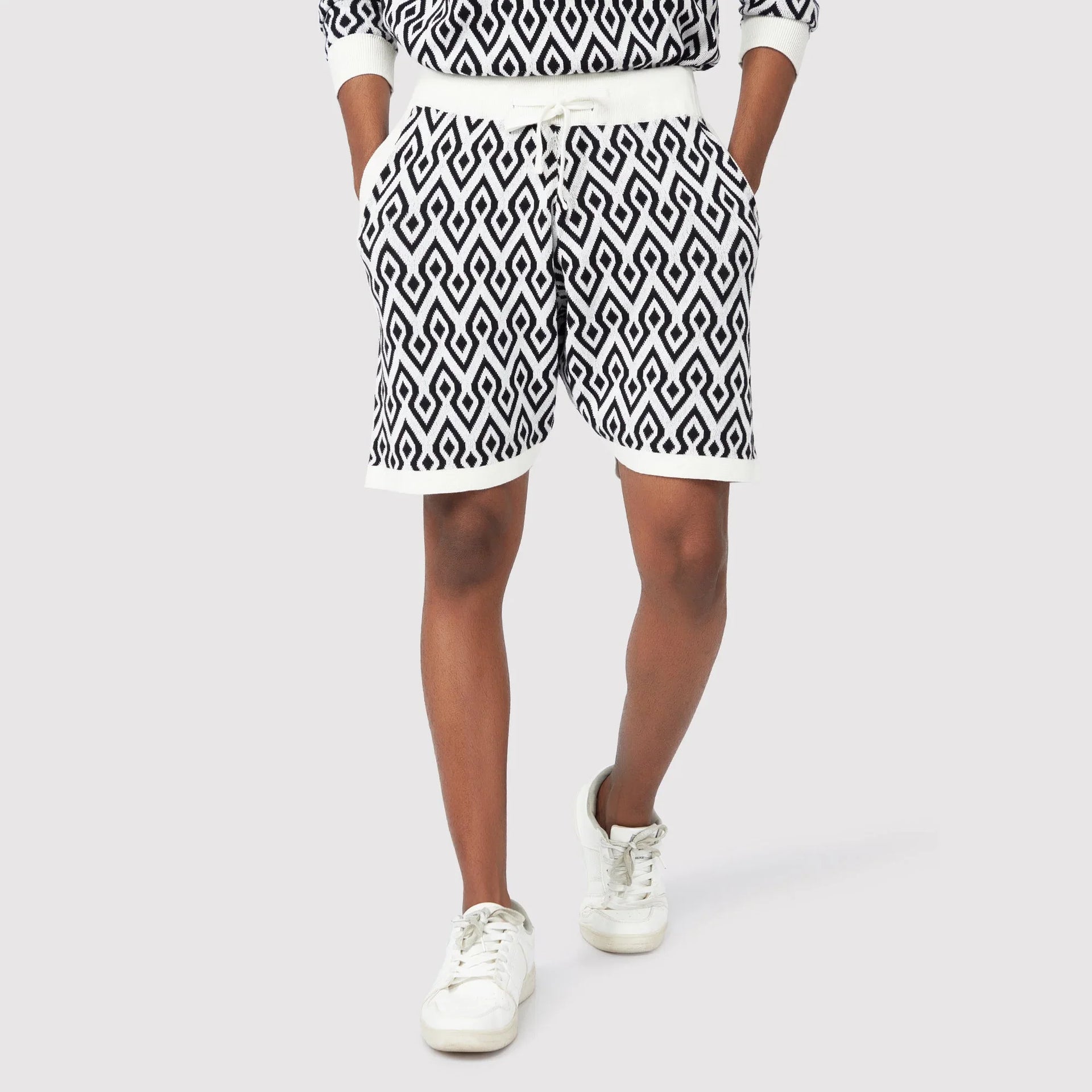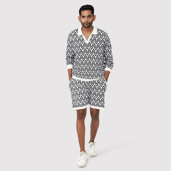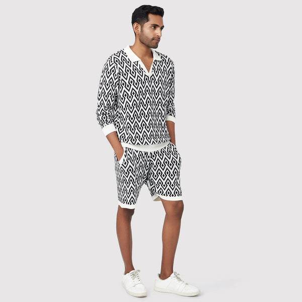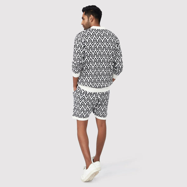 Colour: Black & WhiteMaterial: Premium cotton-blend fabricOccasion: Casual, Travel, Weekend wearPattern: Aztec printFit: Regular fitNo. of Pockets: 2 side pocketsRise Style: Mid-riseCare Instructions: Machine wash cold, gentle cycle; avoid bleach; air dryPack Contains: 1 pair of Aztec Black & White ShortsLength: Above-the-knee lengthCountry of Origin - India