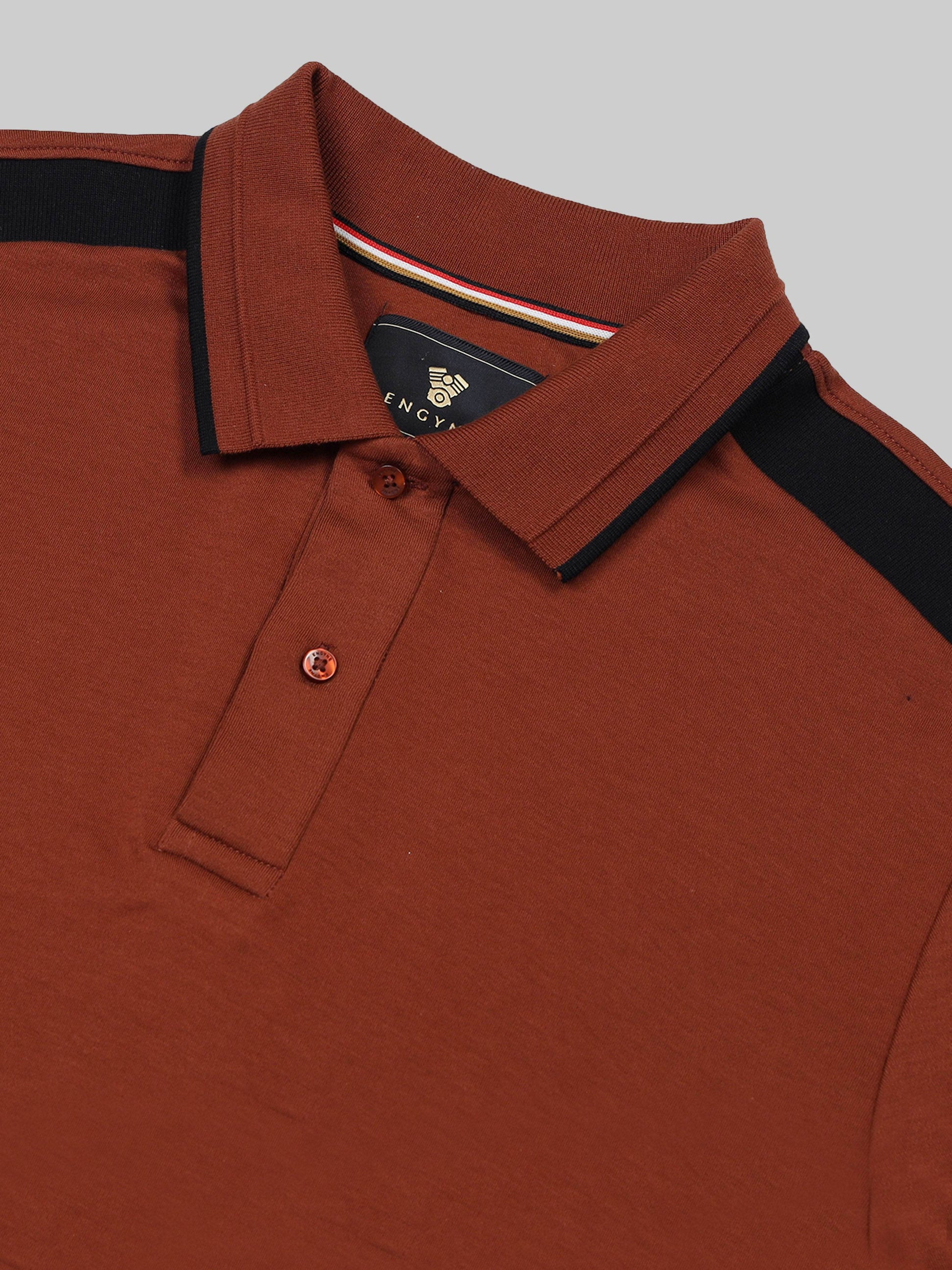 Engyne Supima Cotton Lycra Polo – Contrast Shoulder with Speed Breaker Collar Brown