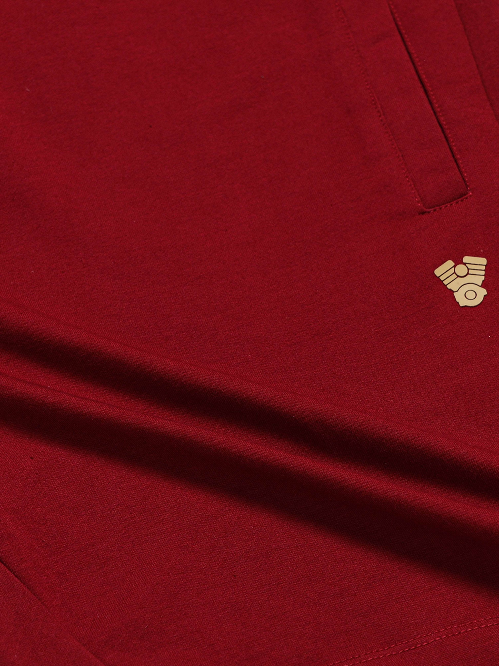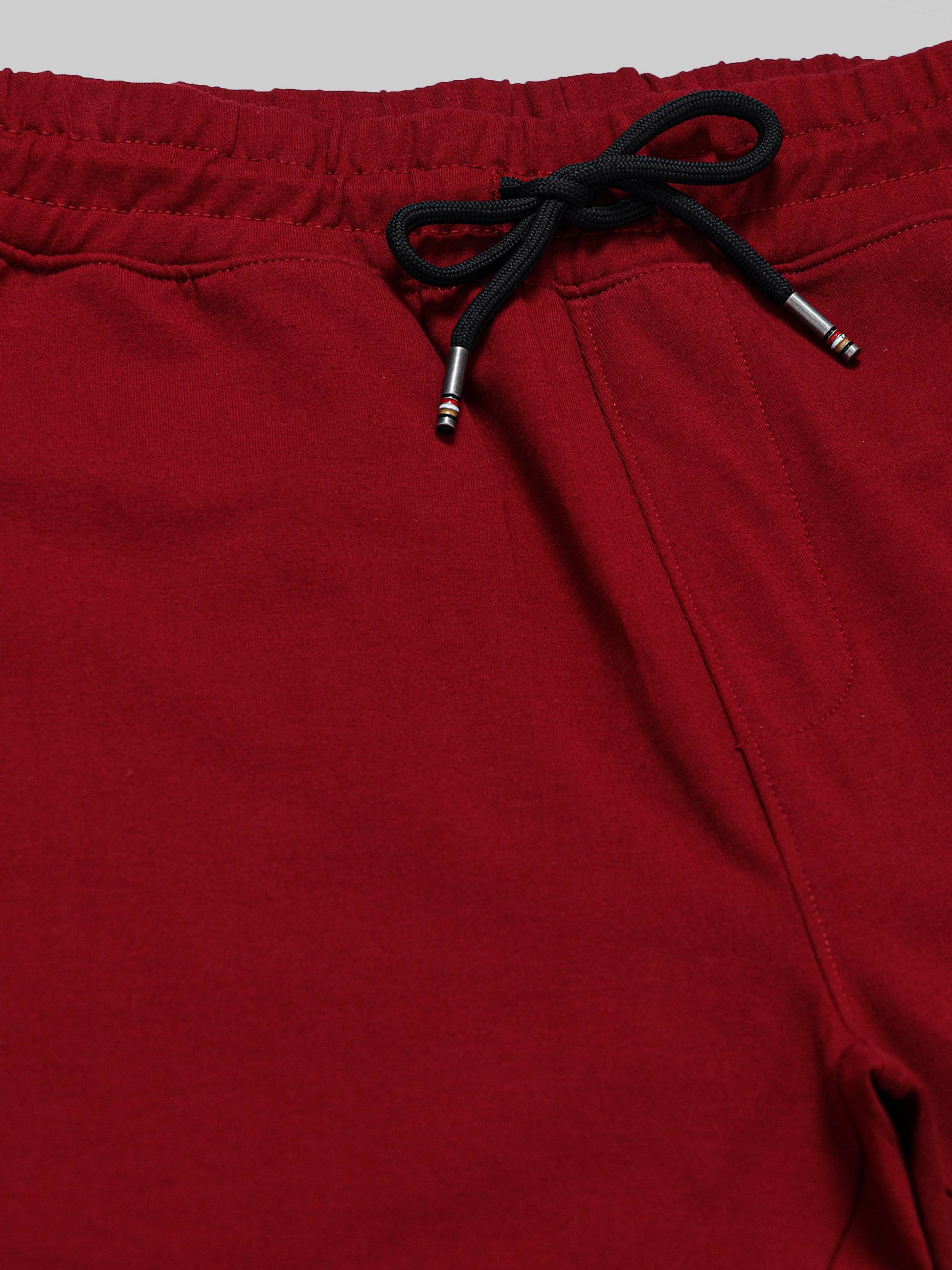 Engyne Essential Shorts with Contrast Iconic Emblem Logo in Rougen Cotton Elastane Loop Knit Red