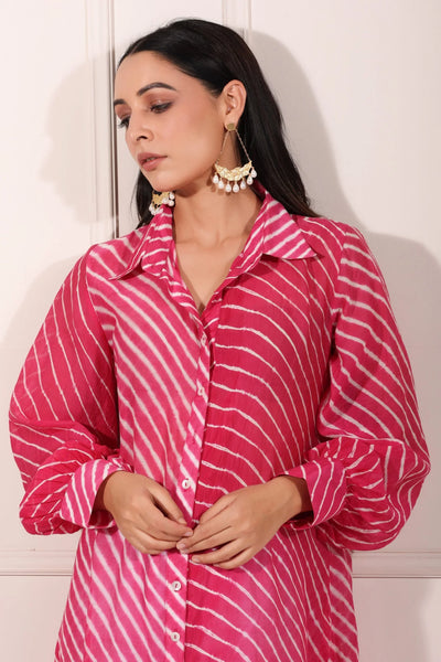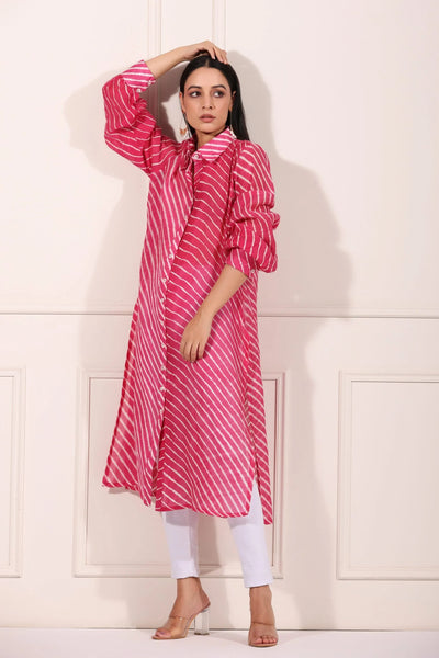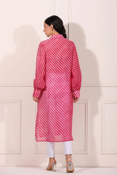 The vibrant pink color of this pink lehriya kurta for women is not just eye-catching but also versatile. It can easily transition from day to night with the right accessories. Add some jhumkas or a statement necklace, and you’re ready for any event. This kurta is not just a piece of clothing; it's a statement of style and confidence.