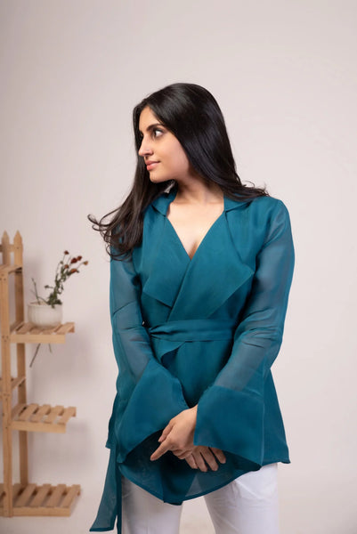Elevate your style with The Eternal Dhaga – Solid Organza Jacket, a true embodiment of sophistication and versatility. This lightweight party wear jacket is perfect for any occasion, seamlessly transitioning from day to night. Crafted with exquisite organza fabric, it offers a flowy silhouette that flatters every body type.