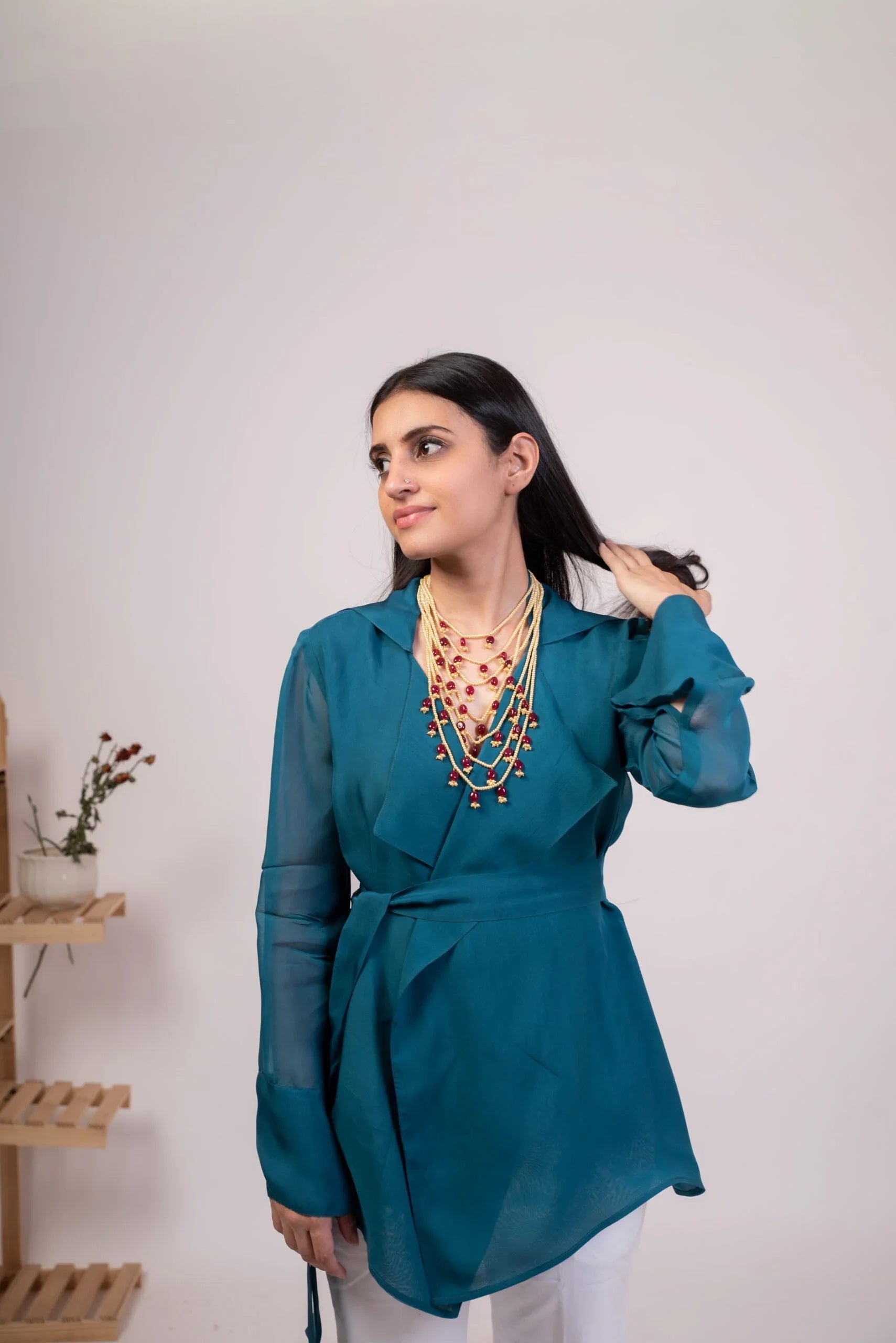 Each detail of The Eternal Dhaga jacket has been thoughtfully designed. The versatile wrap style allows for easy adjustments, fitting you just right. This lightweight party wear jacket not only complements various outfits but also makes for a timeless piece you’ll reach for repeatedly.