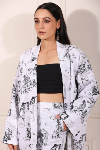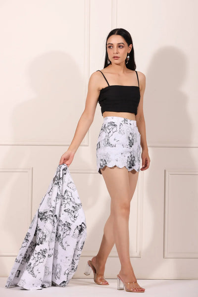This fashionable set not only enhances your look but also reflects your unique sense of style. Make a statement with this eye-catching co-ord set that is both trendy and timeless. Discover fashion that fits every moment with the women's printed blazer shorts set at Stylera. Embrace the culture of Jaipur and stand out in any crowd.