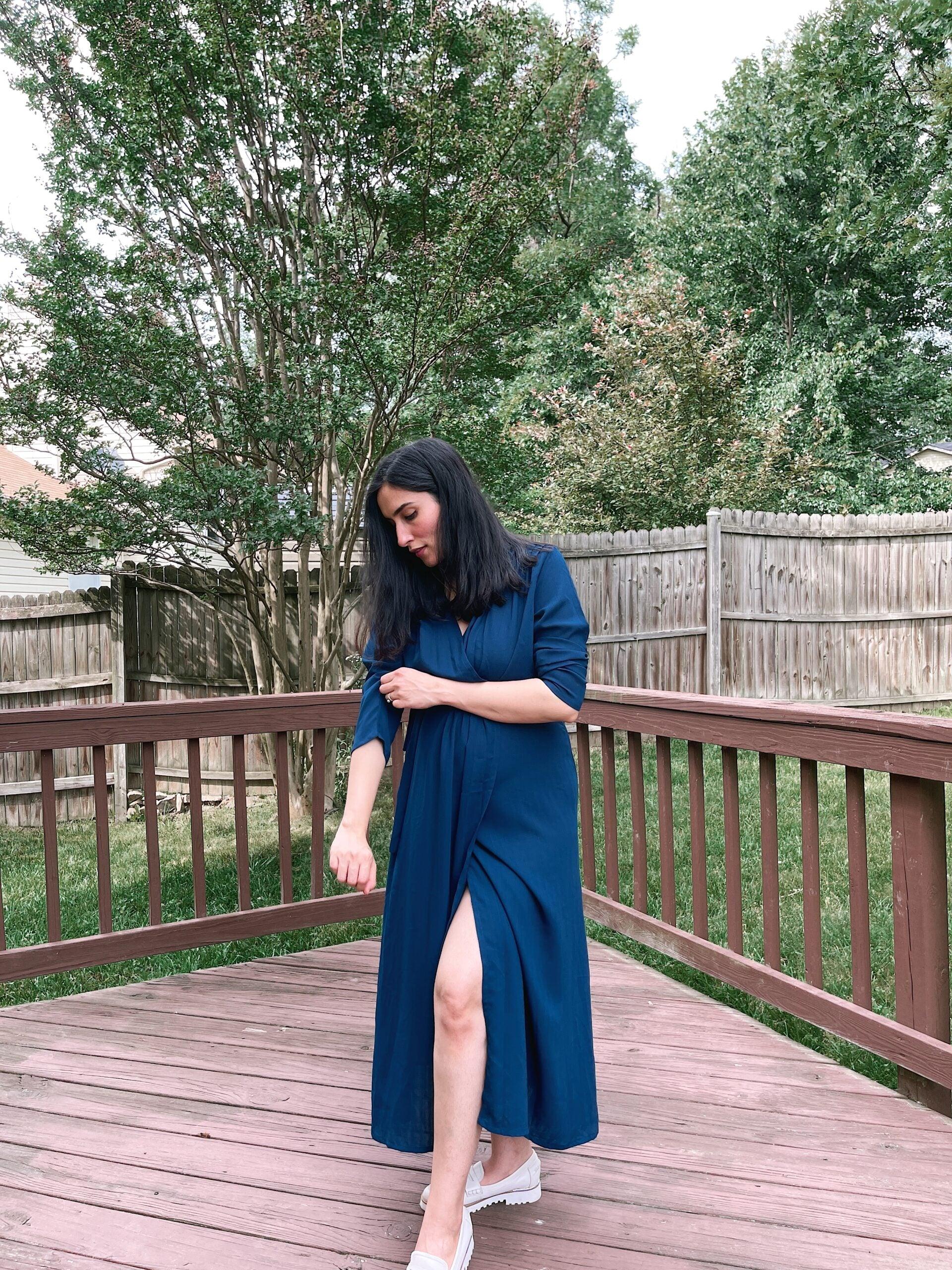 Made for comfort, this women's blue wrap midi dress is breathable and lightweight. It’s perfect for all-day wear, whether you're heading to brunch or a garden party. With a flattering silhouette and thoughtful design, you are sure to turn heads wherever you go.
