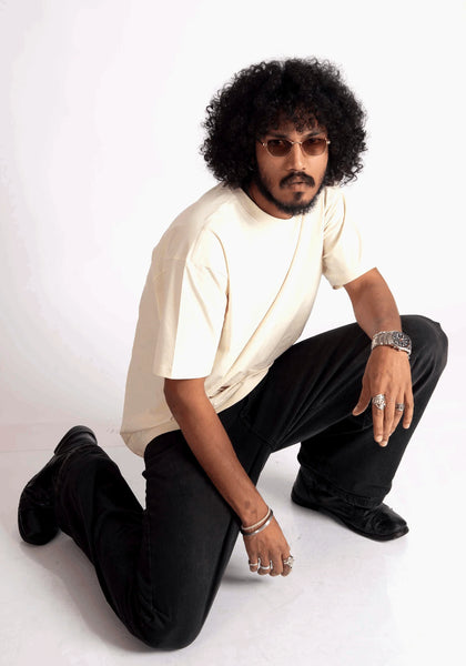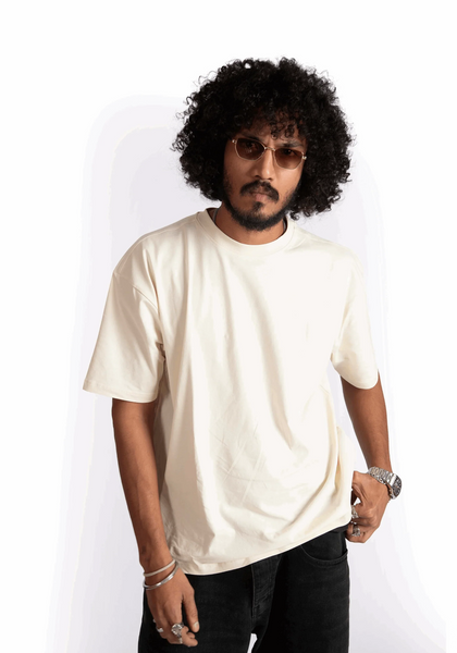 The oversized almond milk t-shirt has a modern drop-shoulder detail that adds a streetwear touch. The sleeves are loose for extra comfort while keeping a neat silhouette. This shirt suits daily errands, casual gatherings, or even layering under jackets and accessories. The neutral color works well for any style and mood, letting your look stand out with less effort.