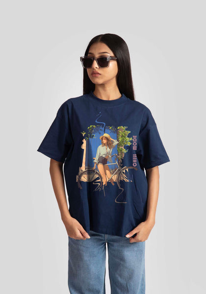 Stylera Oversized Blue Graphic Tee for Womens