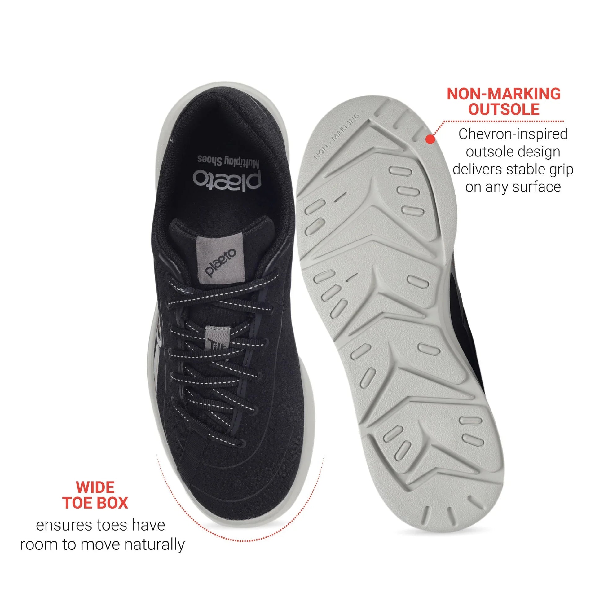 Plaeto Go Black shoes are crafted to keep up with your lifestyle from casual walks to intense workouts. With a flexible, supportive sole and breathable material, they offer comfort, stability, and versatility. Whether strolling around town or breaking a sweat at the gym, these shoes adapt to every move with ease and style.