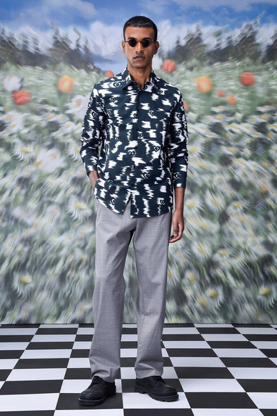 Pair it with modern accessories for a statement look. Its black and white tones match effortlessly with sneakers or dress shoes. It moves easily from work meetings to weekend plans. Every time you wear this, you showcase your taste for trendy printed shirts for men.