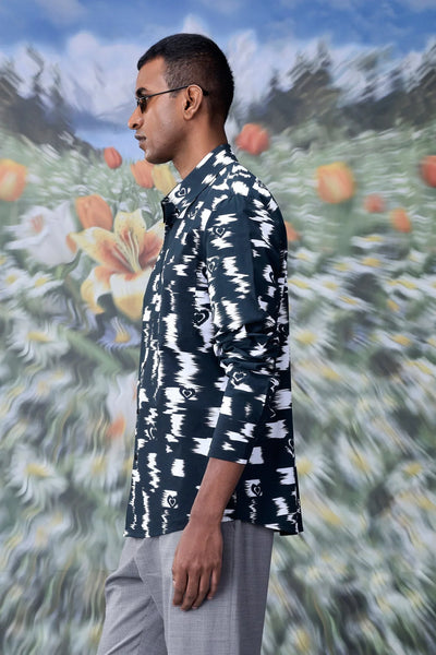 Step into style with the Ikat Check Print Regular Fit Shirt - Black from Stylera. This shirt is designed by Stylera for men who appreciate fashion and comfort. Part of our collection of trendy printed shirts for men, this piece stands out with its unique Ikat pattern and striking check design.