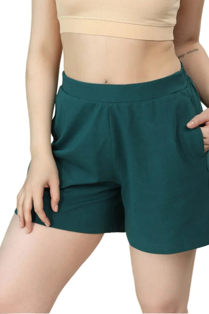 Women’s Organic Cotton Lounge Shorts – High-Waist with Utility Pocket (280 GSM) (Deep Teal)