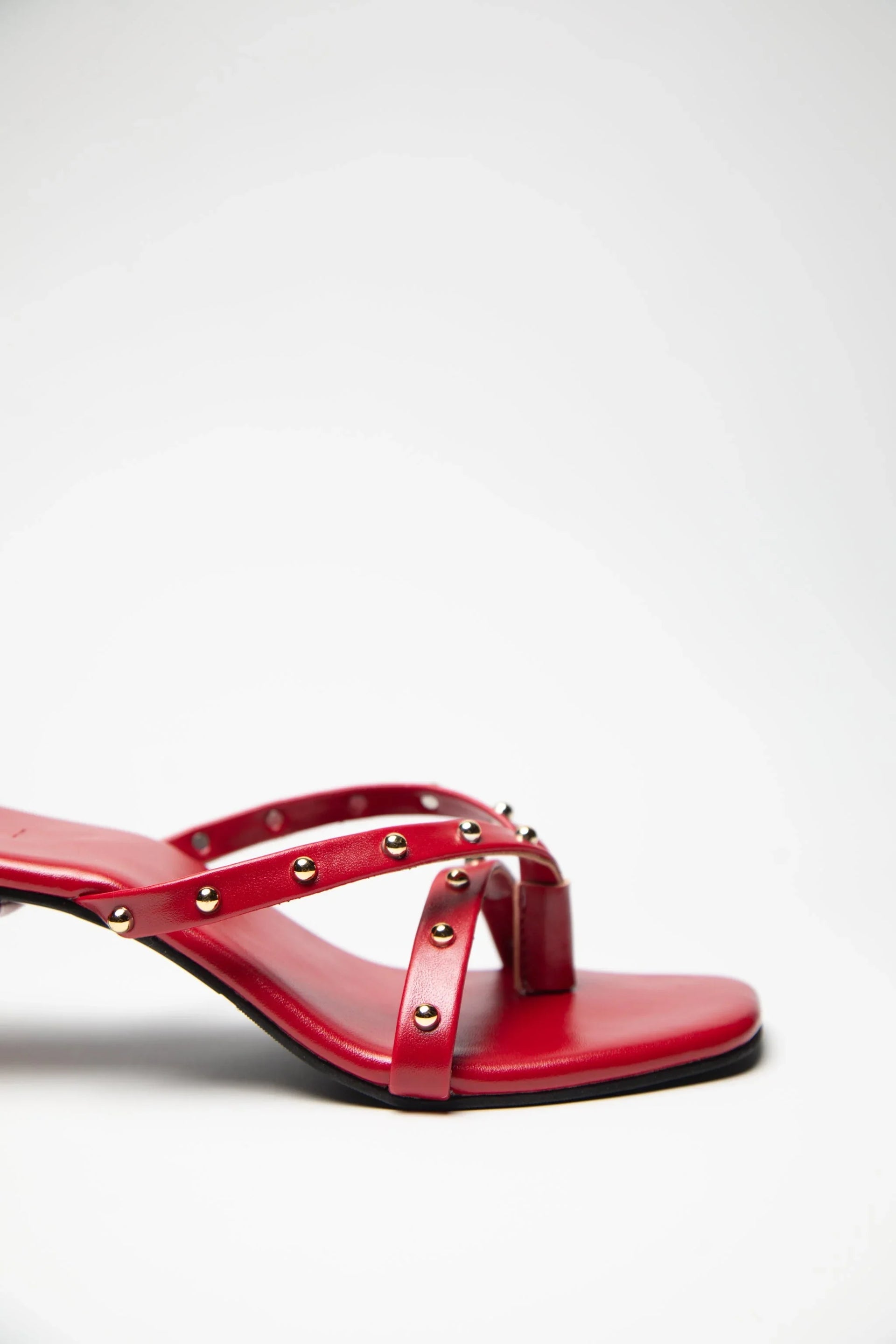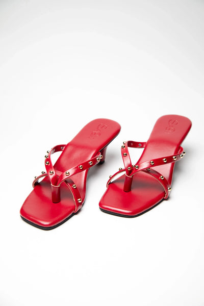 Gold Studded Kitten Heels - Red