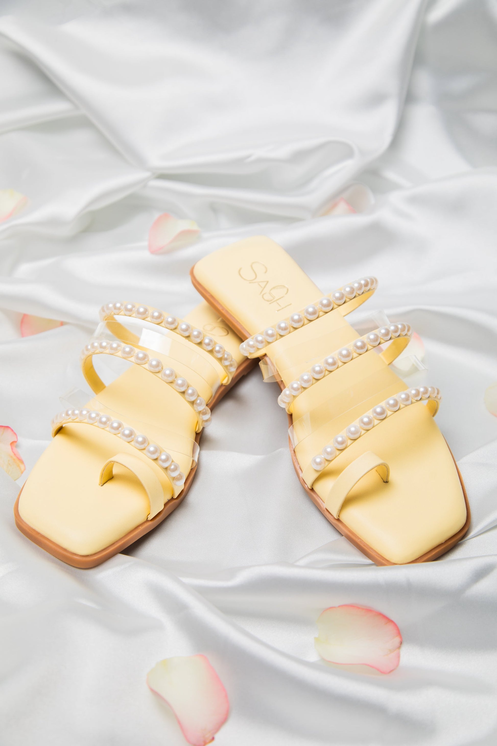 Step up your style game with our ultra cushioned flats in Butter Yellow adorned with pearl strings. These flats blend seamlessly with your festive or ethnic wear as well as your work kurtas and casual denims.