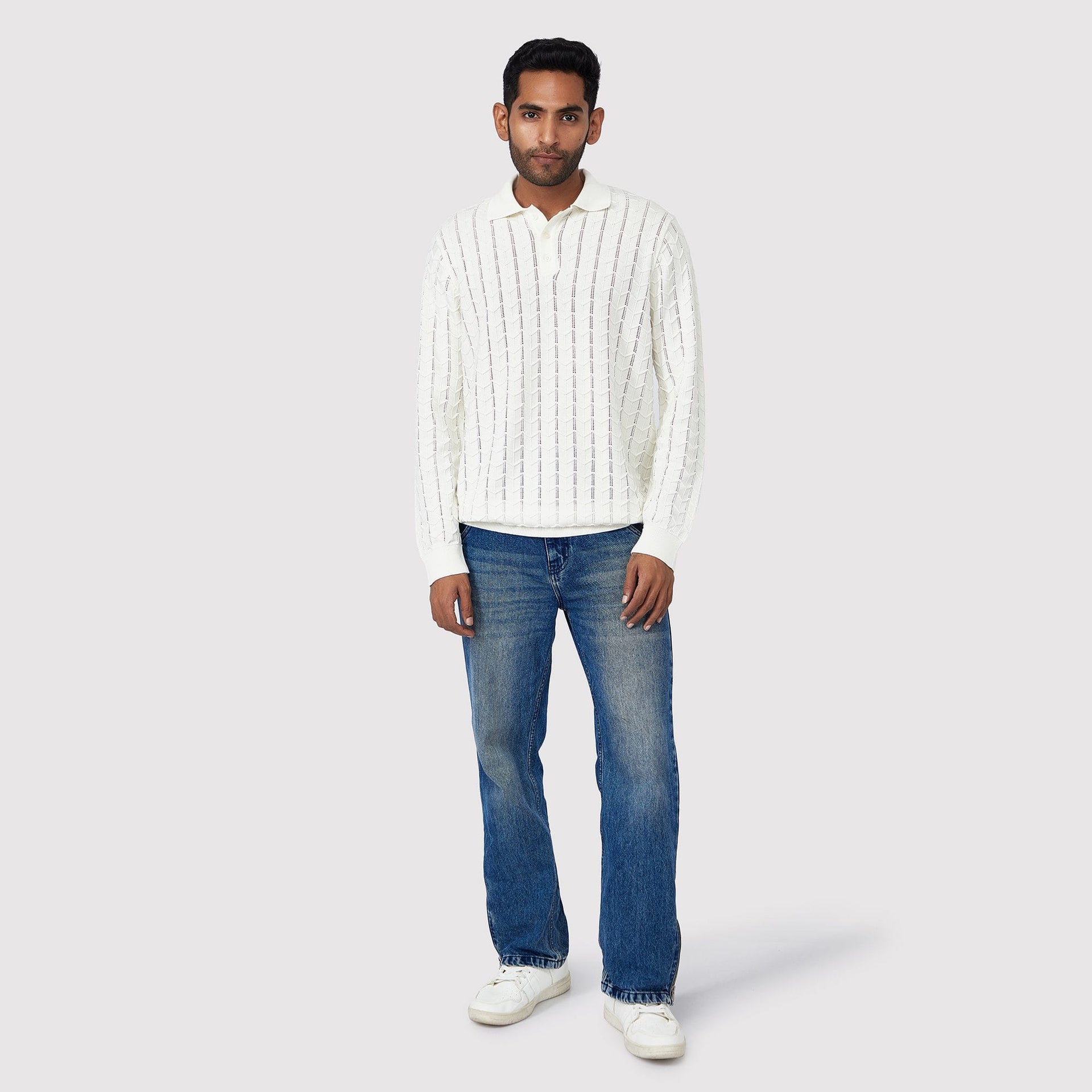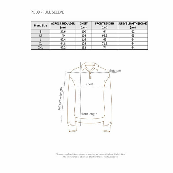 A minimalist & clean self patterned polo with button closure and full sleeves.Micro structure knit finish. Medium knit fabric.Breathable and made with 100% premium cotton.