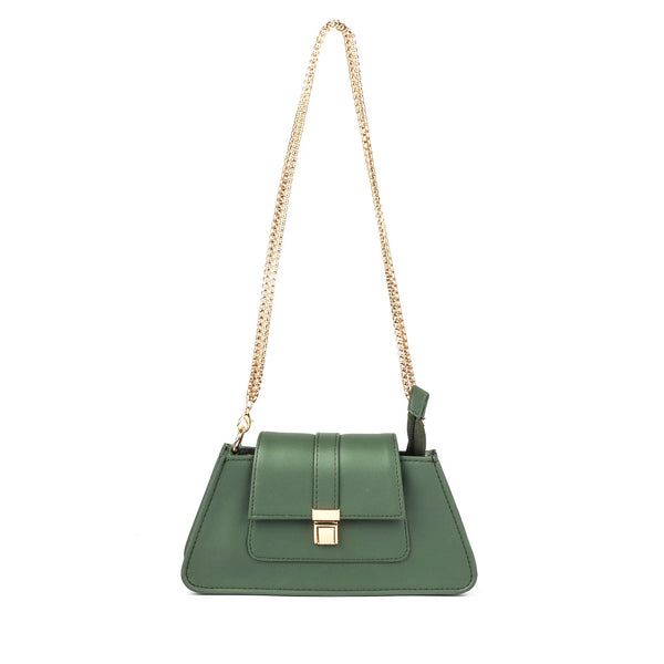 This trendy green handbag is also adorned with gold-tone hardware, enhancing its luxurious feel. The front flap with a push-lock closure ensures your belongings are secure while adding a modern twist to its classic design. Perfect for fashion enthusiasts, this bag proves to be a statement piece in any wardrobe.