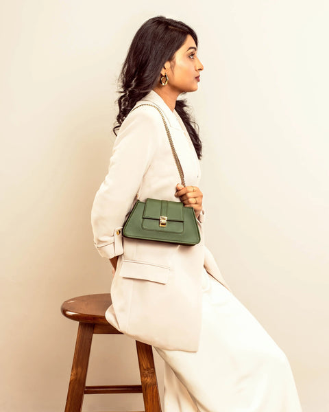 Pair this mini baguette bag with your favorite outfits—jeans, dresses, or skirts—and watch it transform your look. Make a bold statement wherever you go with the Emerald Elegance Mini Baguette Bag. It is not just a handbag; it is a fashion upgrade.