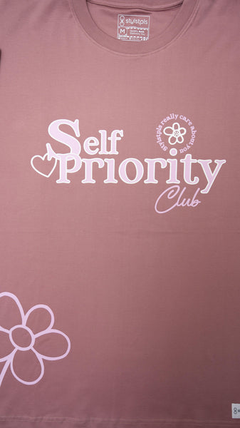 Elevate your comfort and confidence with this Self Priority Club T-shirt. Crafted from 220 GSM Supima cotton, the relaxed-fit self-care t-shirt features a bold puff + screen print design. Designed for mental health, mindful living, and everyday style — your essential premium streetwear tee.