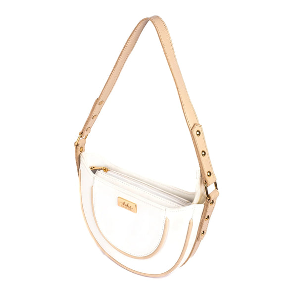 Introducing the Ivory Lustre Hobo/Shoulder Bag, a stunning blend of elegance and practicality. This trendy white leather purse captures attention with its chic design and versatile style, making it perfect for any occasion. Whether you're heading to brunch or an evening out, this bag meets your fashion needs effortlessly.