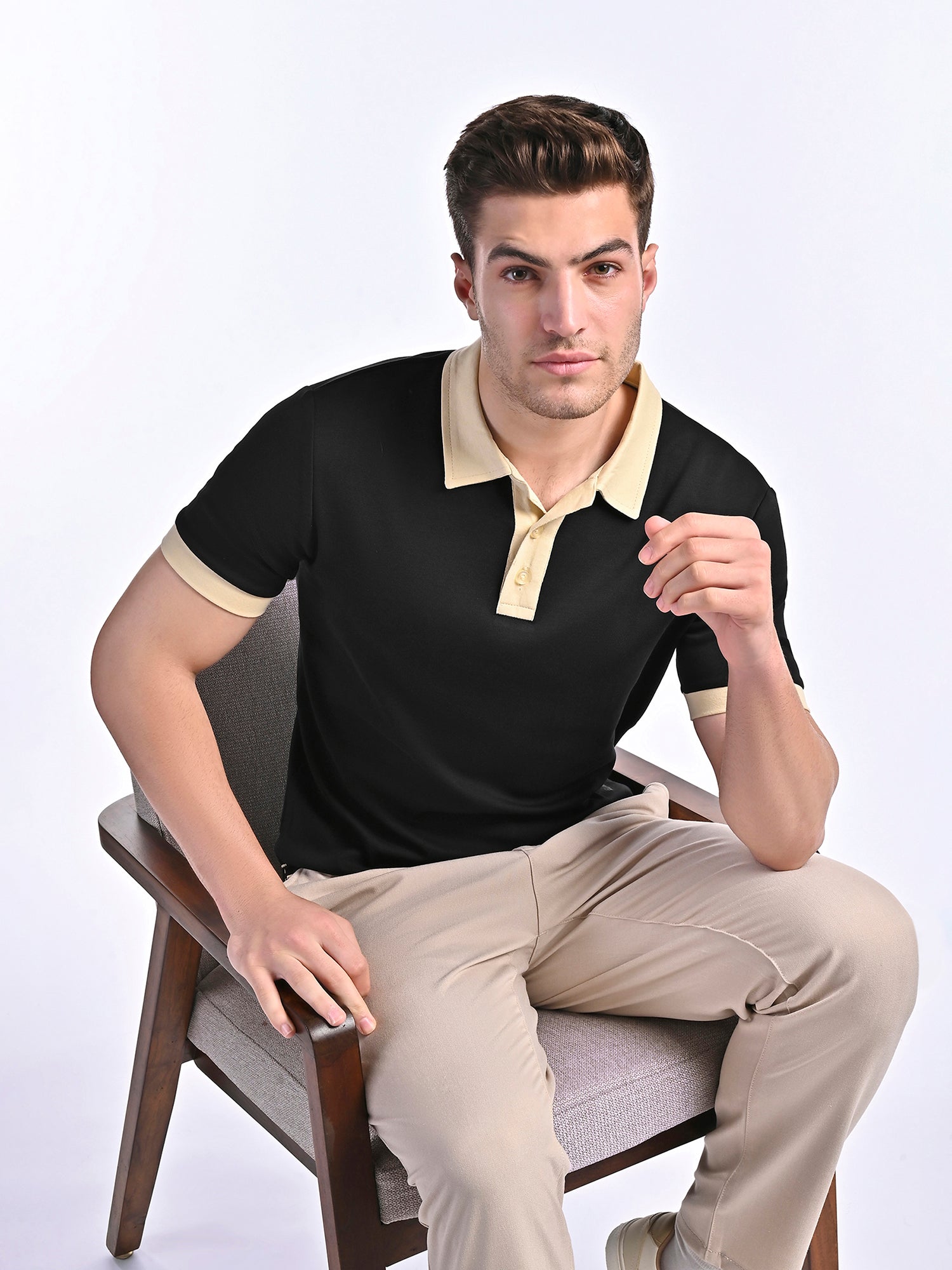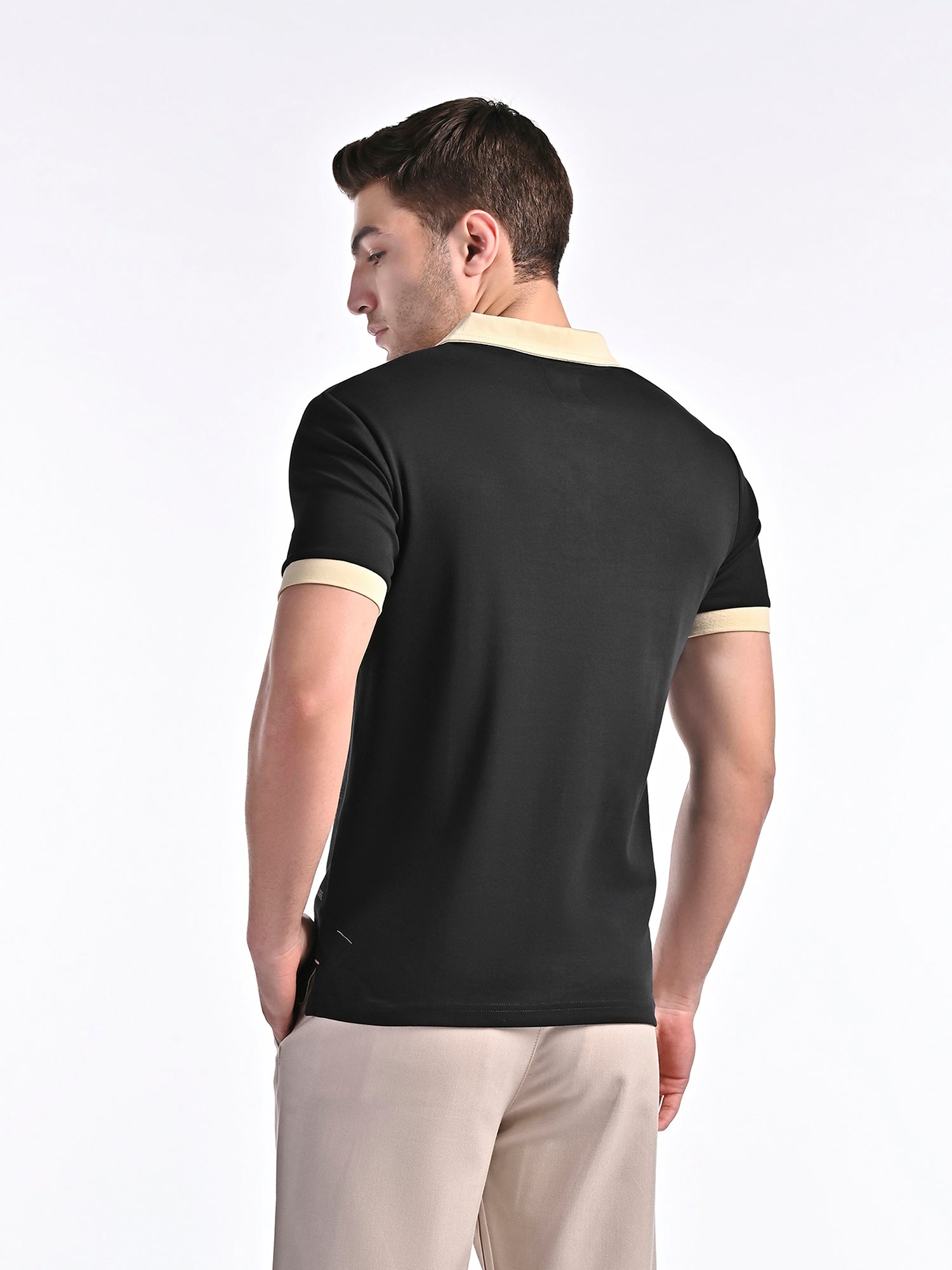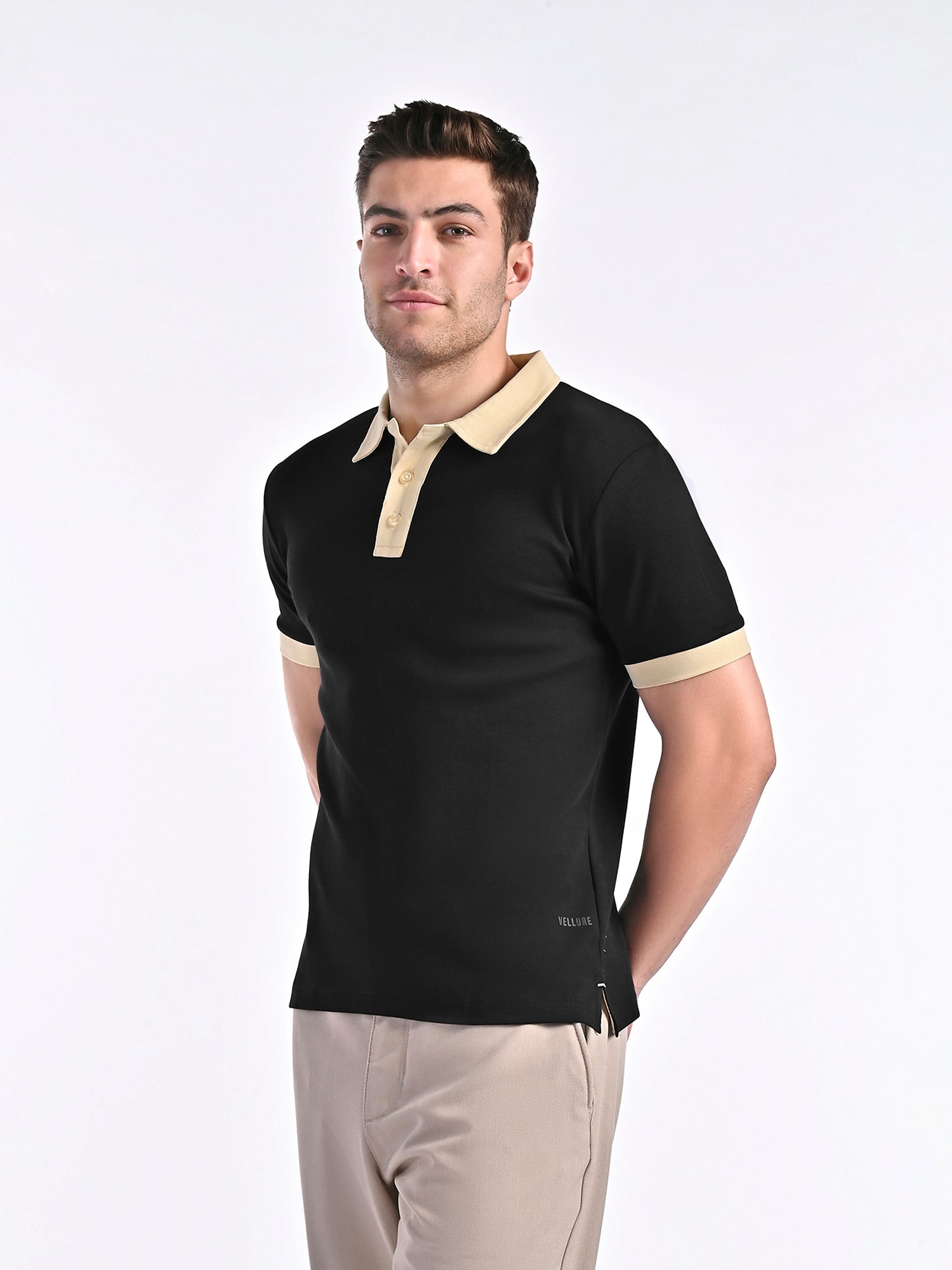 ? Silky, Buttery Soft Feel – Crafted from 100% premium interlock cotton for a luxuriously smooth texture.? Ultra-Comfortable Wear – Breathable, lightweight fabric with a natural stretch for effortless movement.? Refined Contrast Detailing – Elegant contrast trims on the collar, placket, and sleeve cuffs for a sophisticated touch.? Minimalist Branding – Features a subtle Vellure Print on one side for understated luxury.