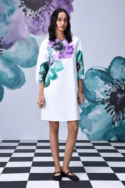 Step into style with the Anemone Flower Regular Fit Dress in White Green by Stylera. At Stylera, regular fit casual dresses for women are always a smart pick. This dress brings a fresh twist to everyday fashion. Bold green and violet floral prints pop on a crisp white base.