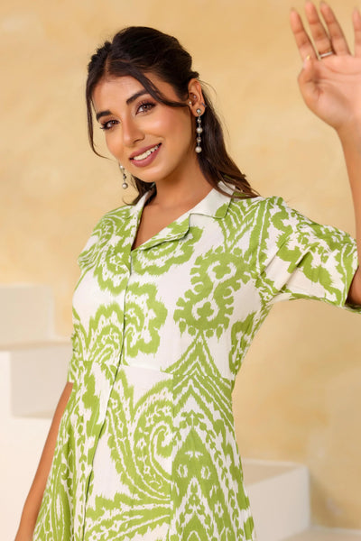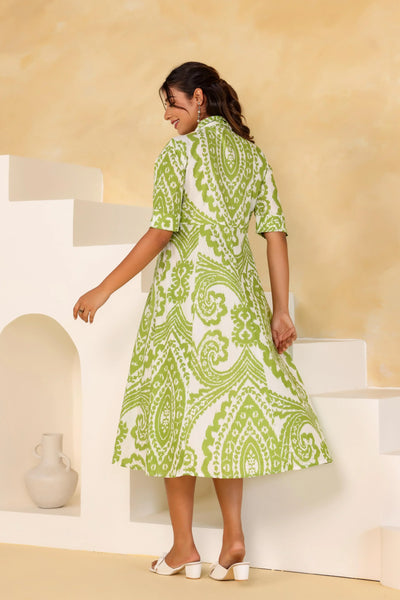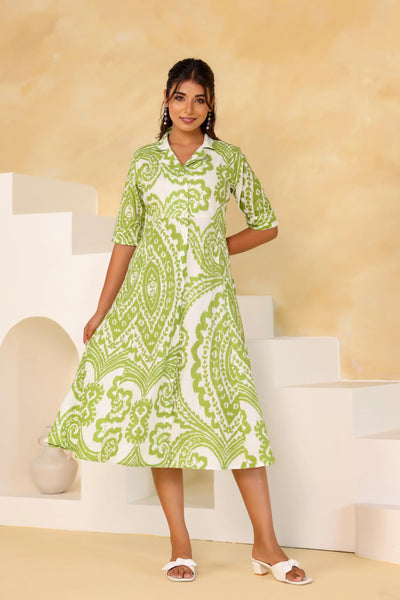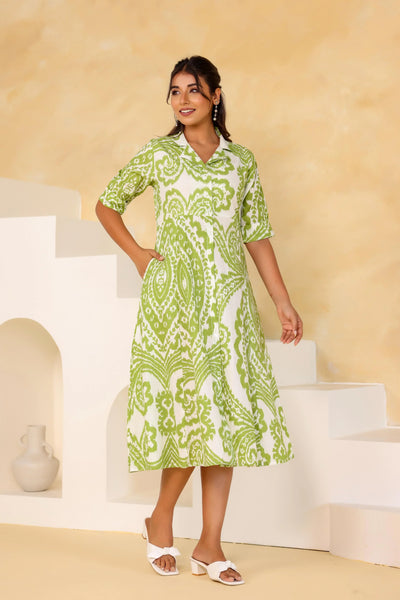 Elevate your summer wardrobe with our stunning green boho summer dress. This A-line dress combines comfort and style, making it a versatile choice for any occasion. Crafted from soft cotton, it features a beautiful printed design that adds a touch of flair to your outfits. The breathable fabric ensures you stay cool on hot days, making it perfect for picnics, beach outings, or casual brunches with friends.